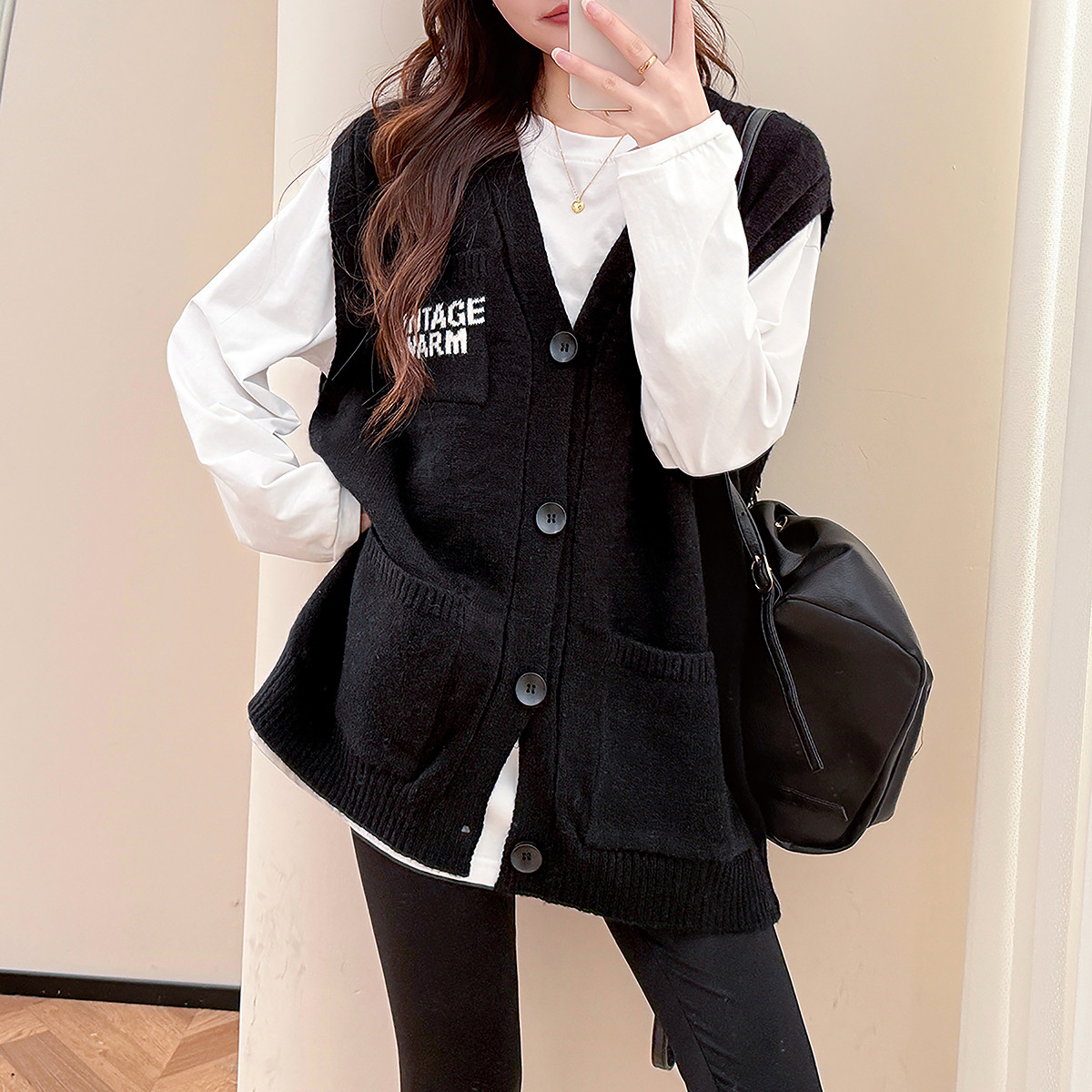 唐狮秋冬毛衣女休闲设计宽松V领开衫马甲春秋红色费尔岛外套TD