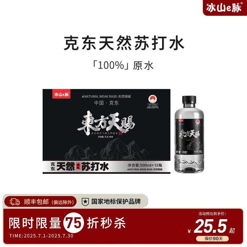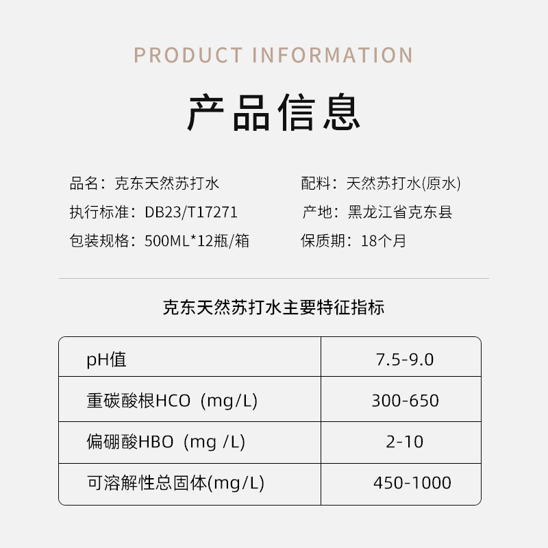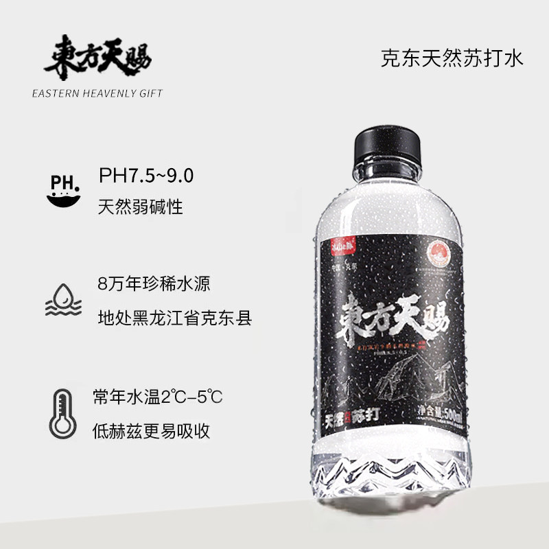 东方天赐克东天然苏打水500ml*12瓶整箱瓶装弱碱性饮用非矿泉水