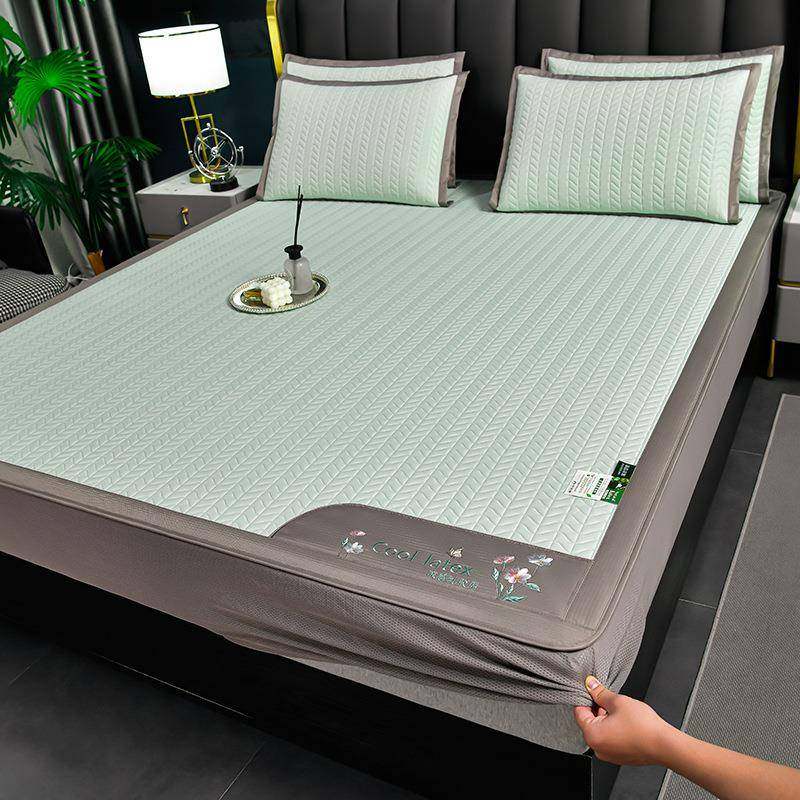 夏季绣花款可水洗凉感乳胶席藤席冰丝席三件套1.8m床席子折叠床笠