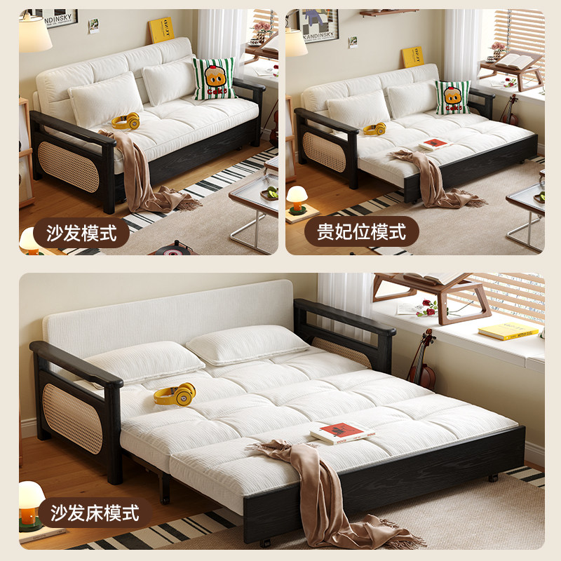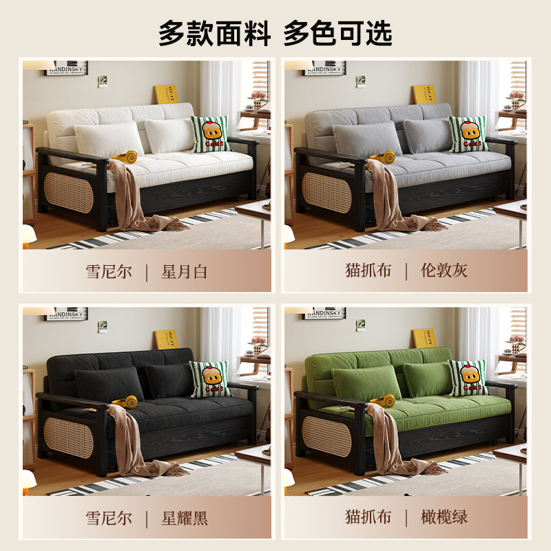 木宫匠家具青芒沙发床拆洗一体两用多功能双人小户型实木编藤沙发