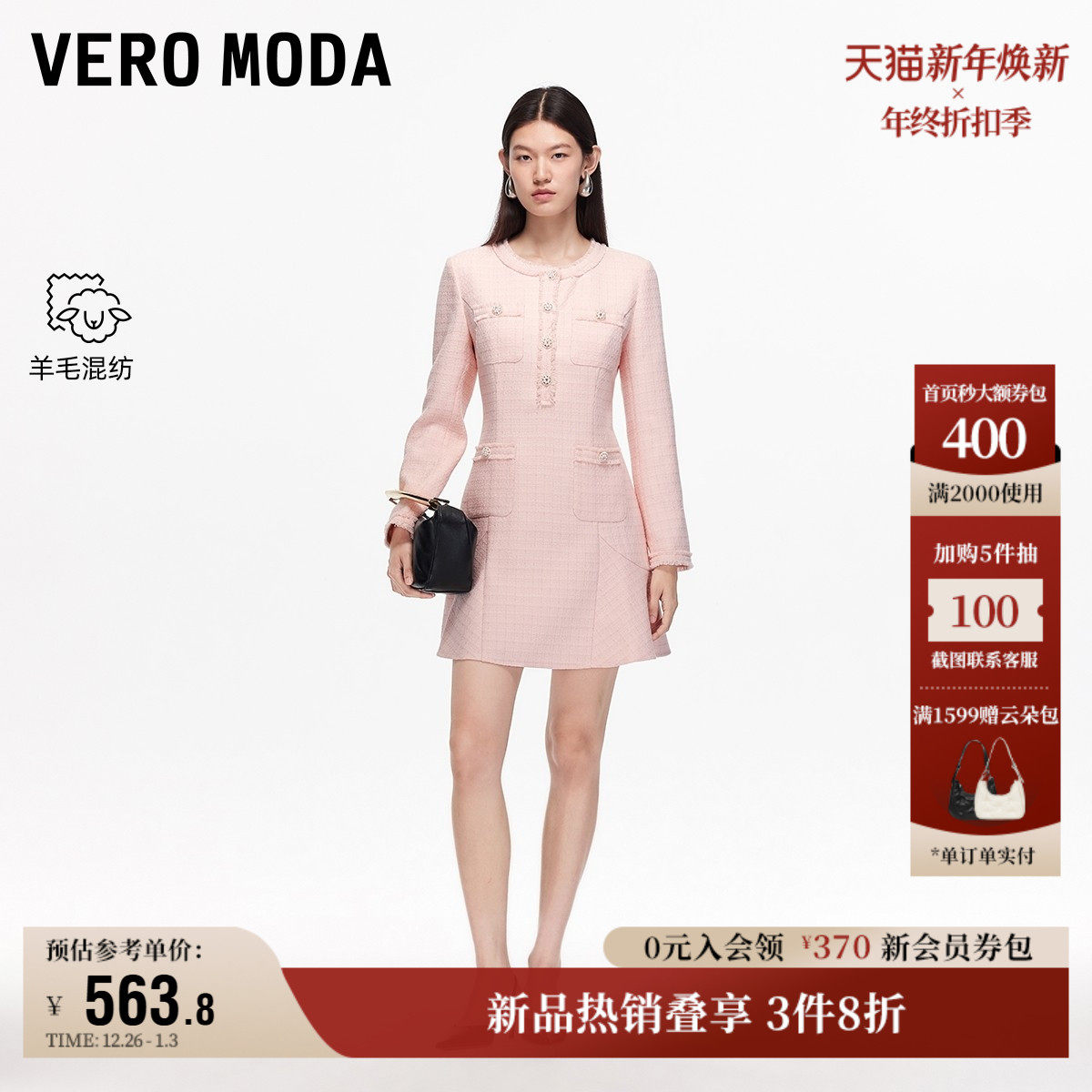 Vero Moda奥莱连衣裙女2025秋冬新款含绵羊毛小香风流苏短裙裙子
