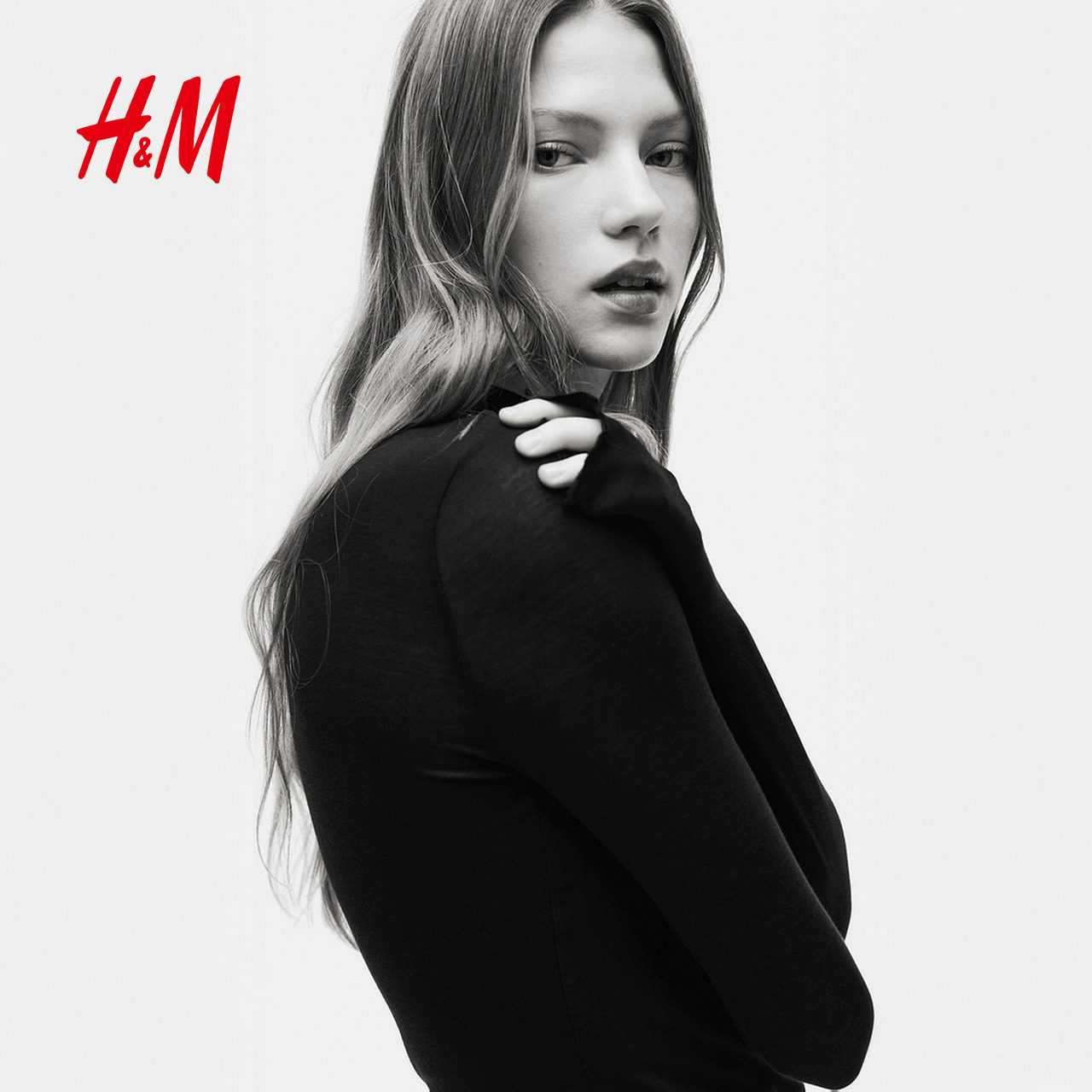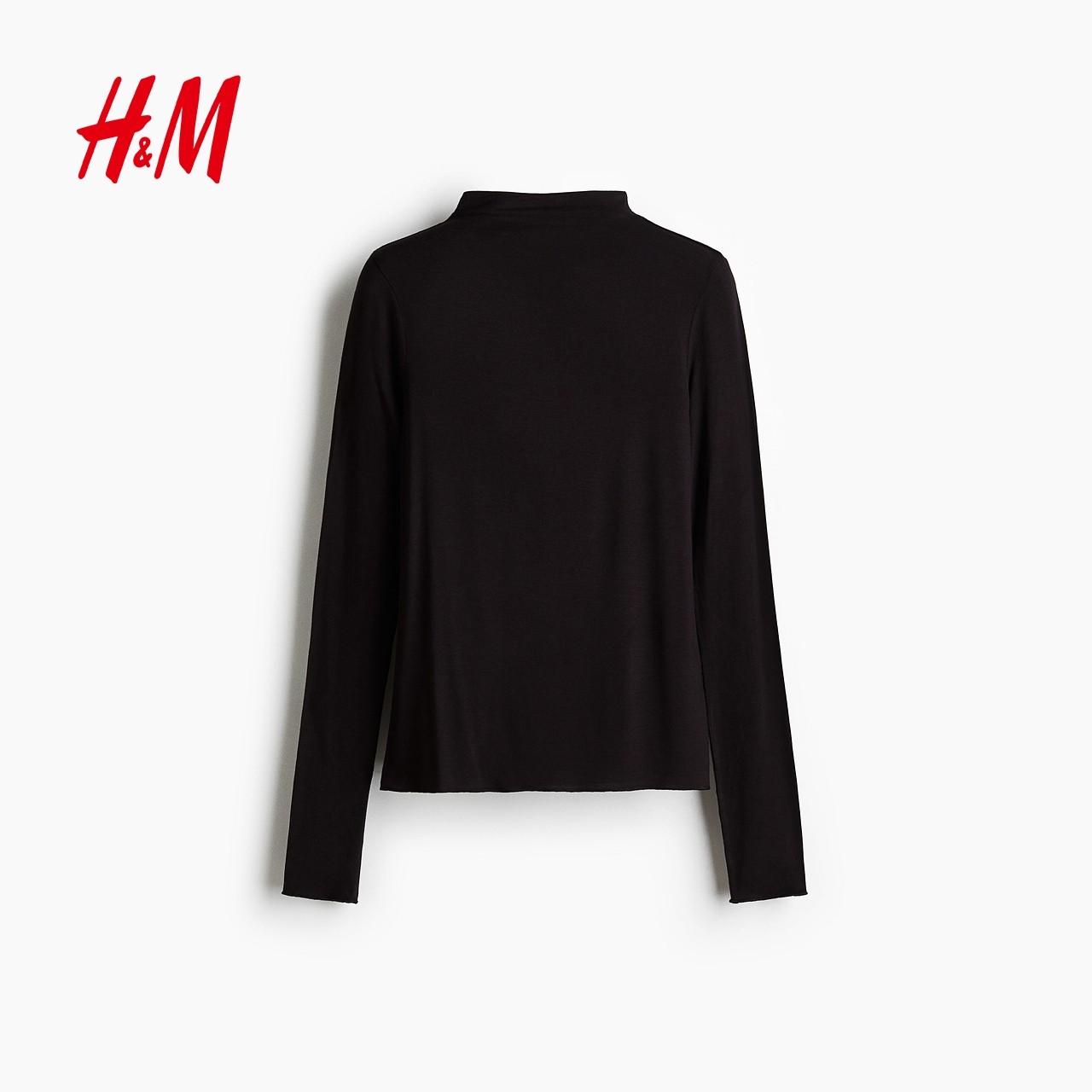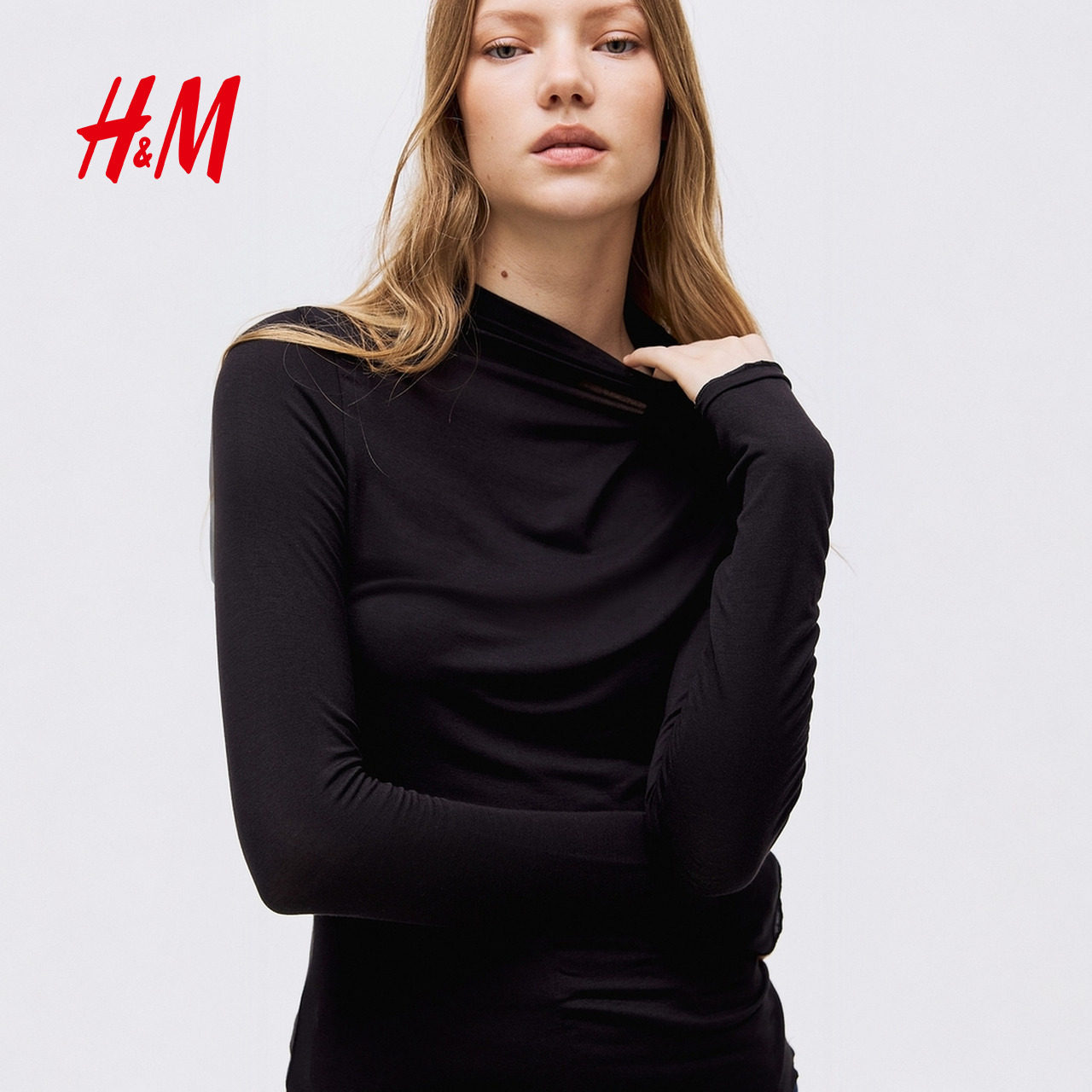 HM女装T恤2025冬季新款高领打底内搭保暖长袖简约休闲上衣1310021
