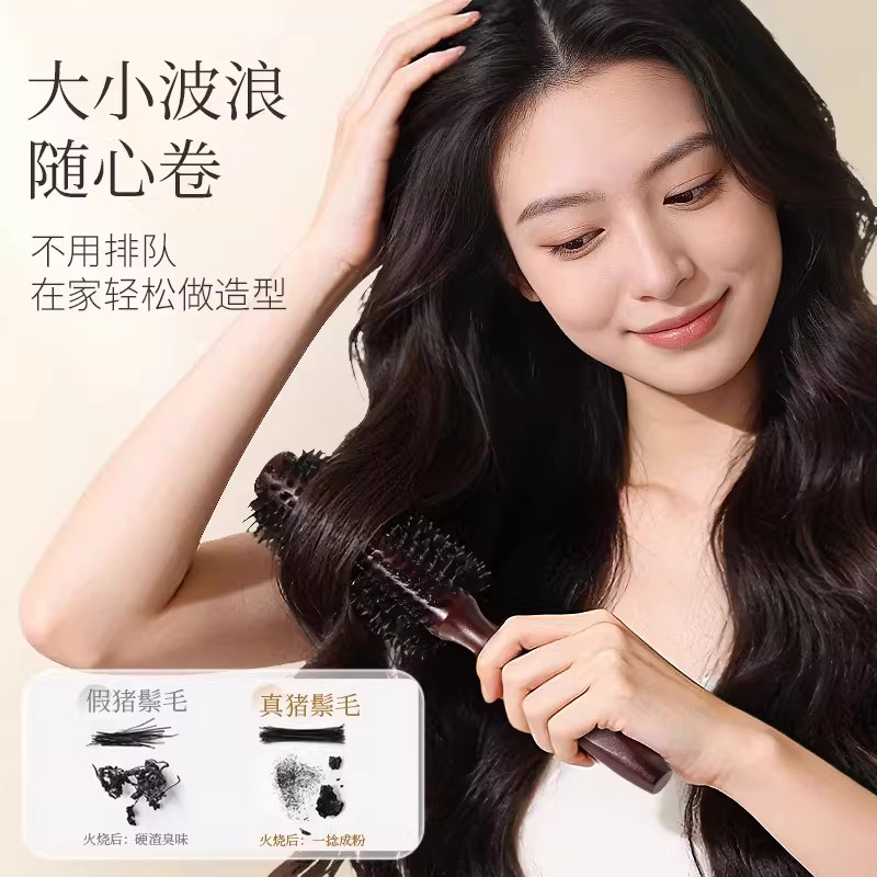 卷发梳子猪鬃毛圆筒滚梳内扣长直发吹头发造型卷梳家用发廊专业女