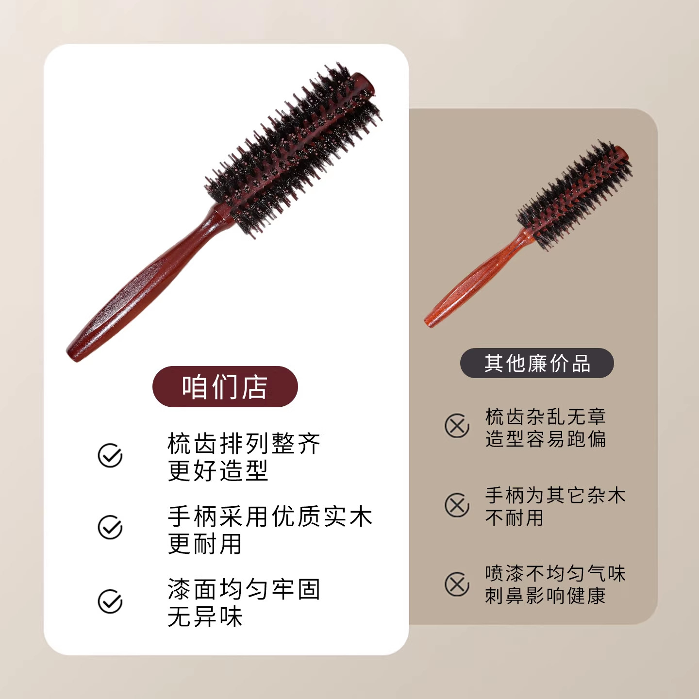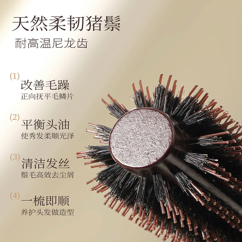 梳子卷发梳猪鬃毛内扣圆筒卷梳吹头发造型滚梳子家用发廊专业男女