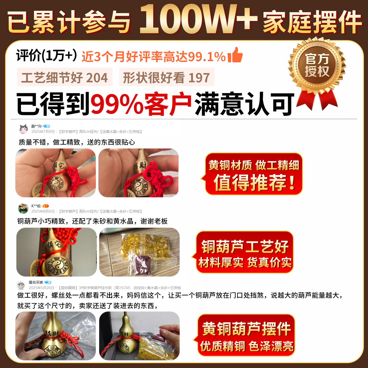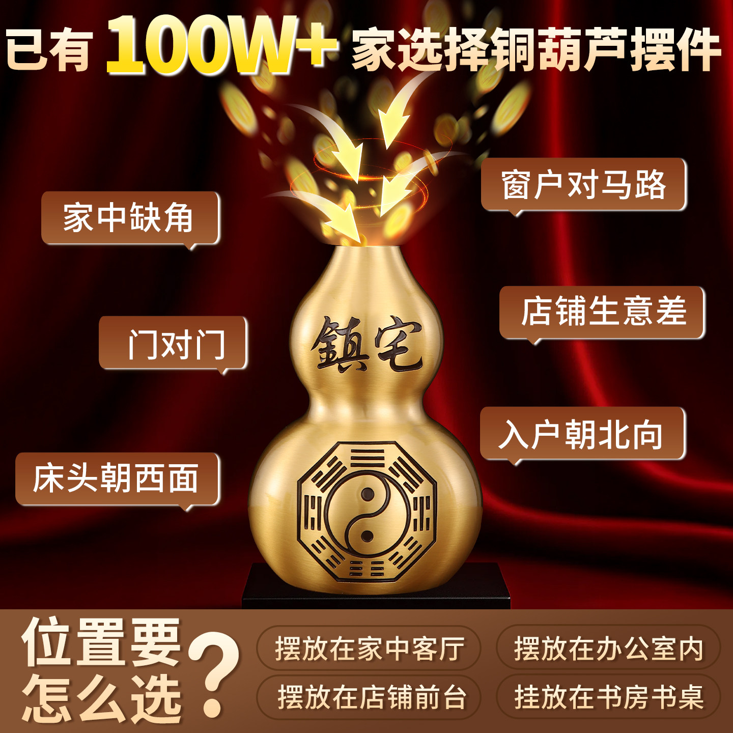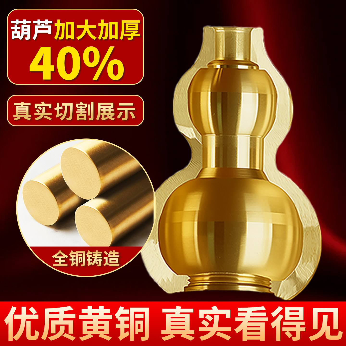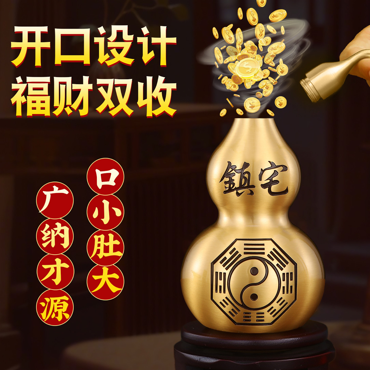 铜葫芦挂件摆件纯黄铜五帝钱八卦开盖空心小葫芦装朱砂家居工艺品