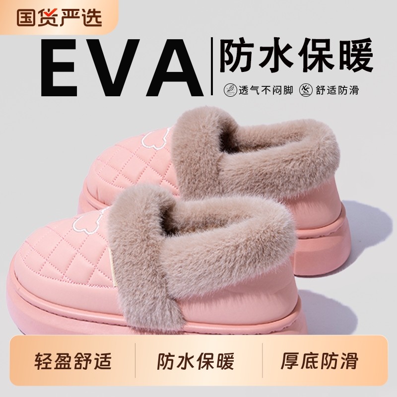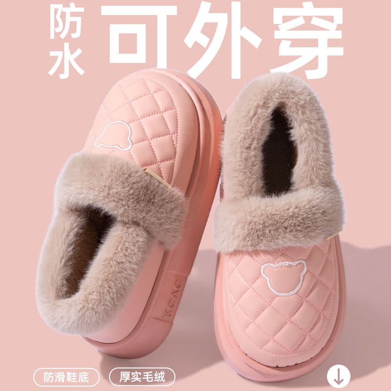 防水棉拖鞋女士2025新款冬季室内居家加绒加厚外穿包跟踩屎感棉鞋