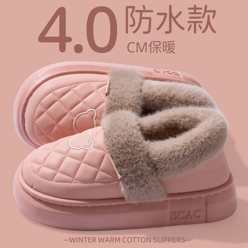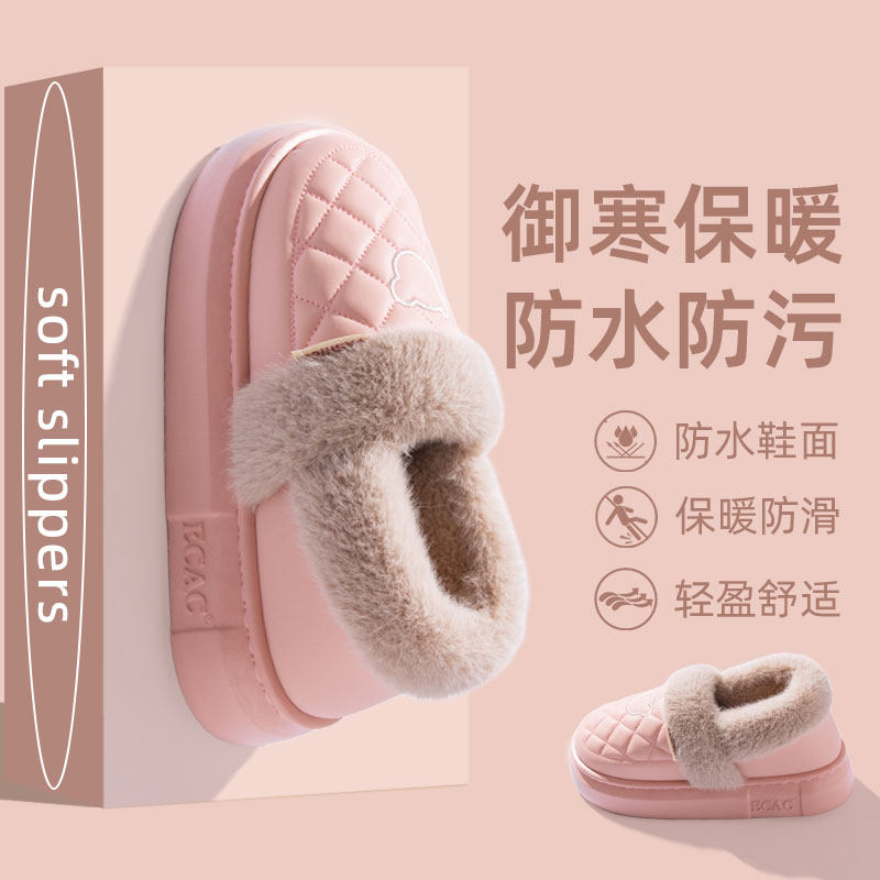 棉拖鞋女款秋冬天2024新款毛拖家居保暖加绒厚底毛绒情侣软底拖鞋