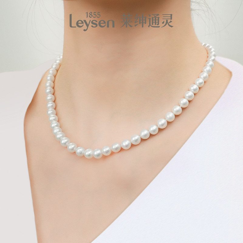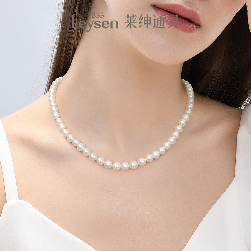 天然淡水珍珠项链近圆白色饱满正品时尚简约送妈妈婆婆母亲节银扣