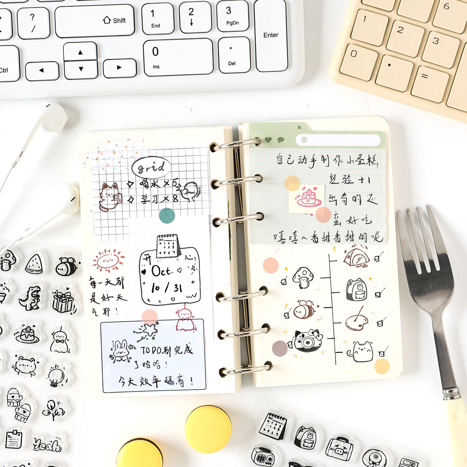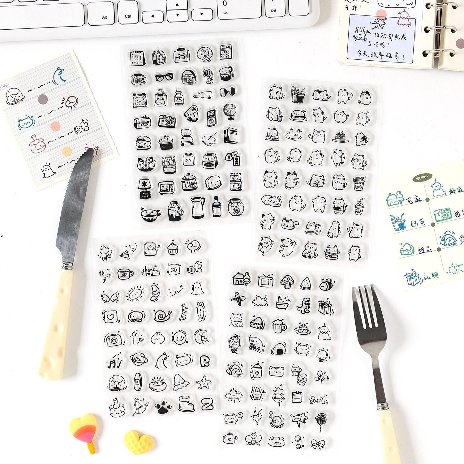 悦真卡通图案透明印章学生手账装饰可爱小动物英文盖章硅胶印章