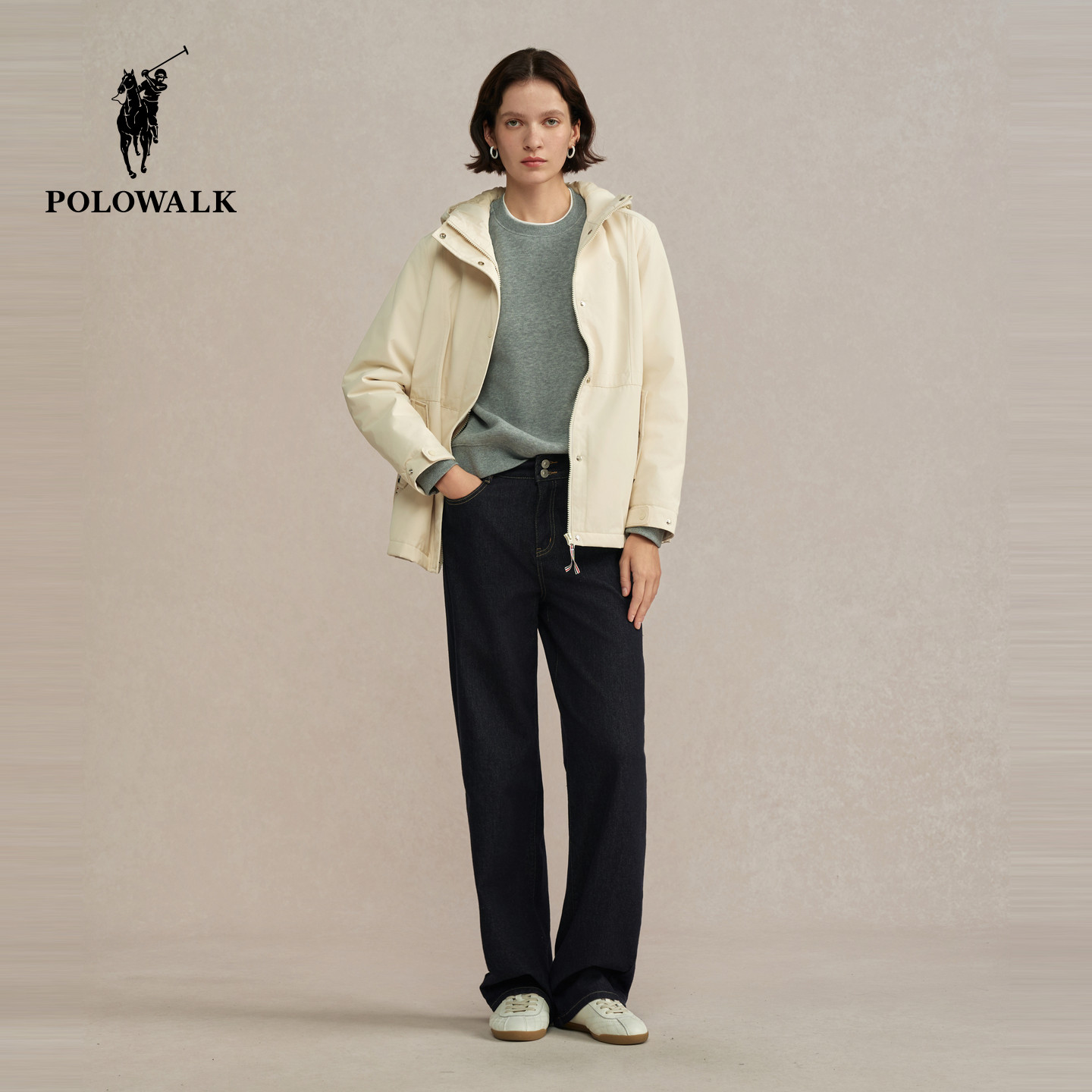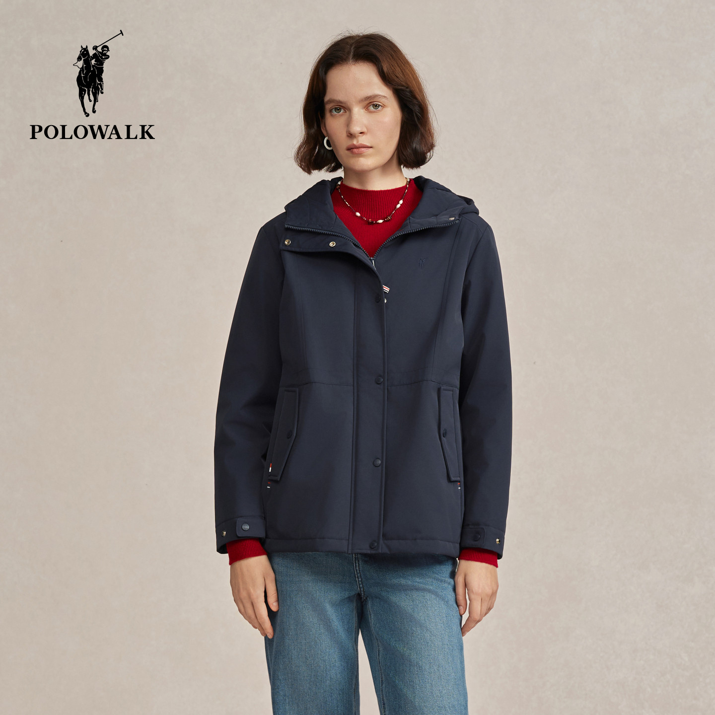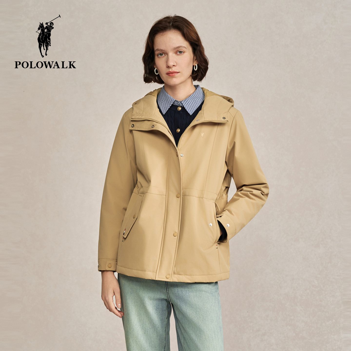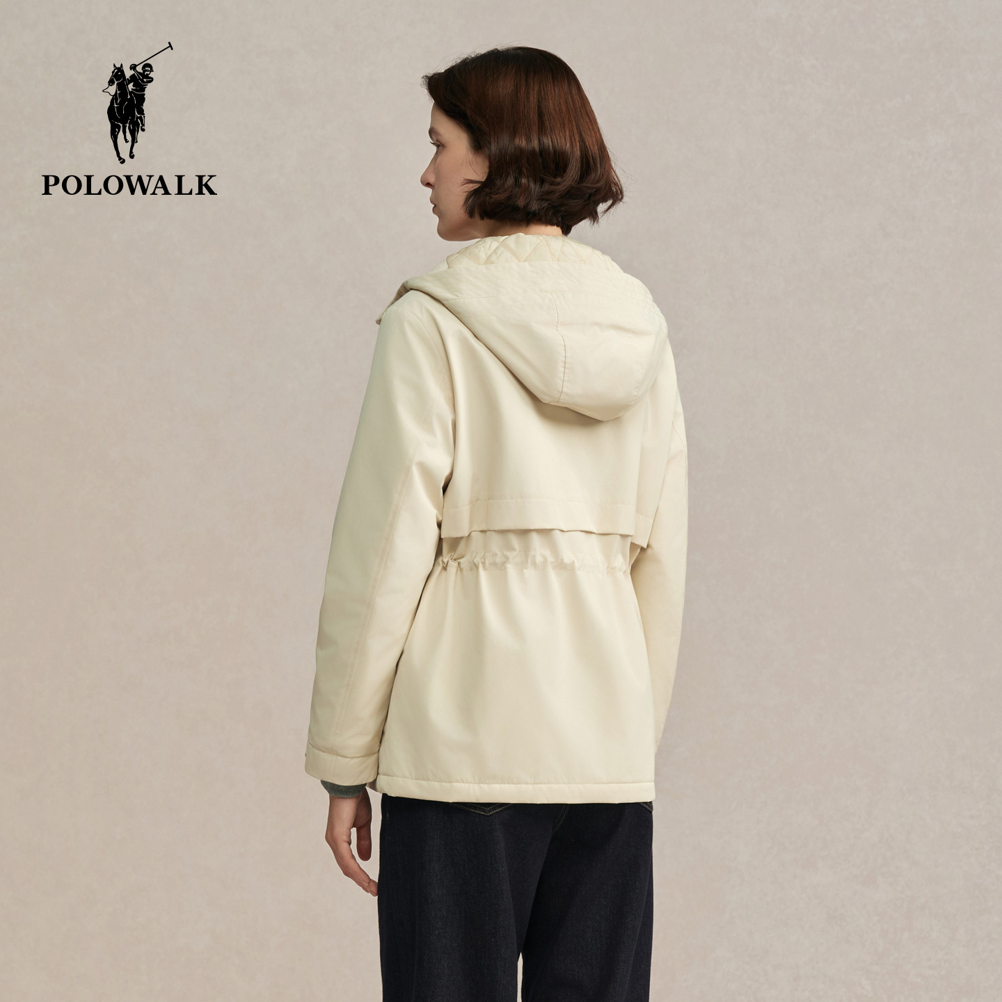 POLOWALK女式外套2025冬季新品女装休闲百搭连帽立领收腰显瘦外套