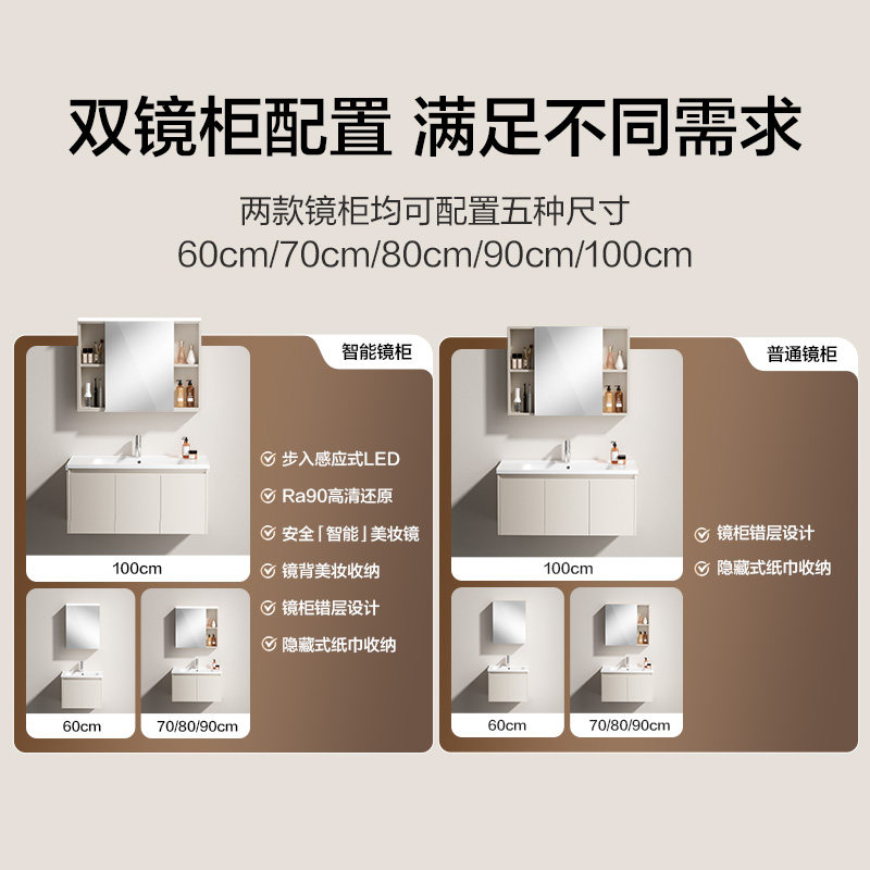 恒洁卫浴现代简约浴室柜小户型卫生间洗脸洗手盆柜组合陶瓷一体盆