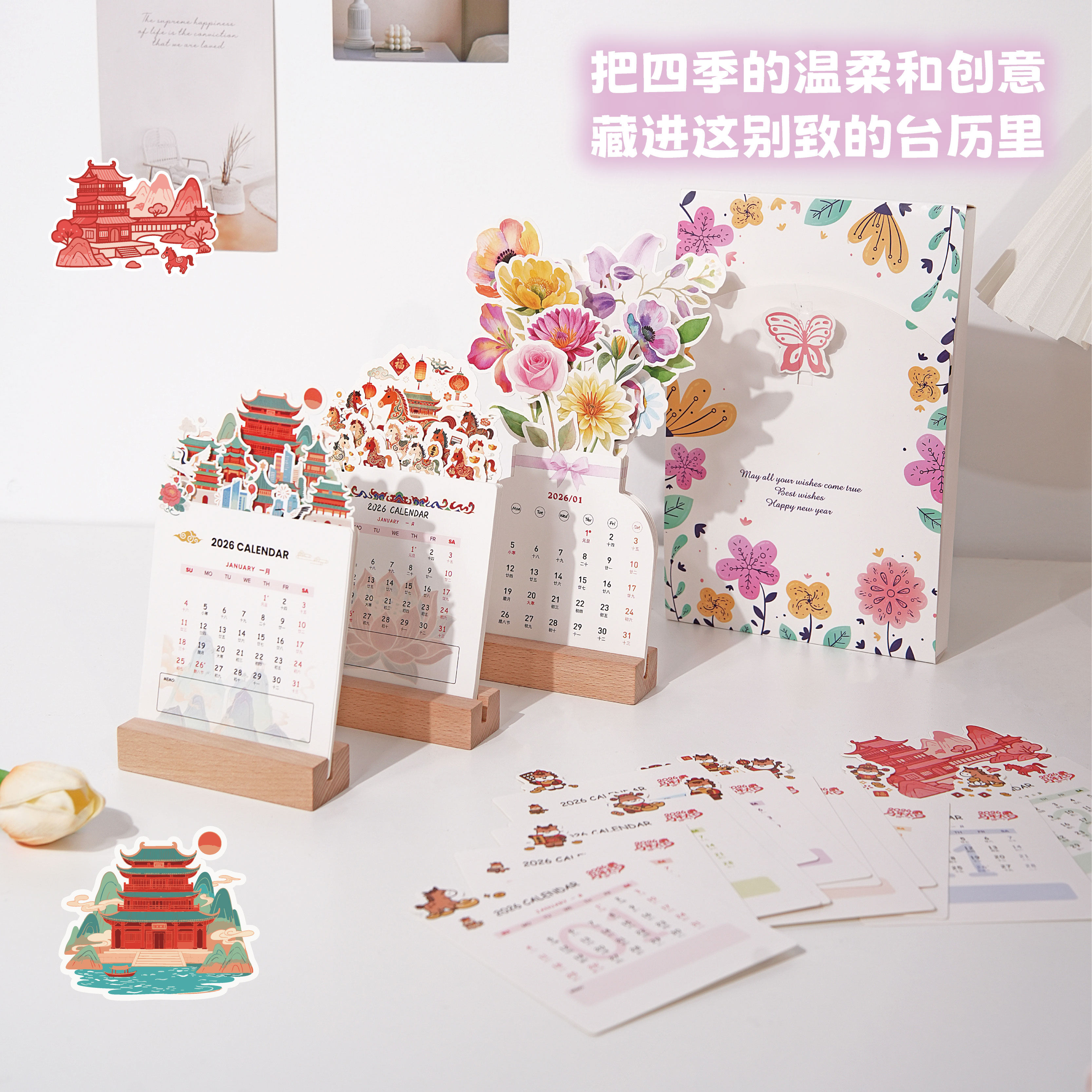 2026年新款台历立体花卉ins风小清新竖款简约卡片式桌面小台历摆件办公桌小礼品送礼企业学校支持定制logo