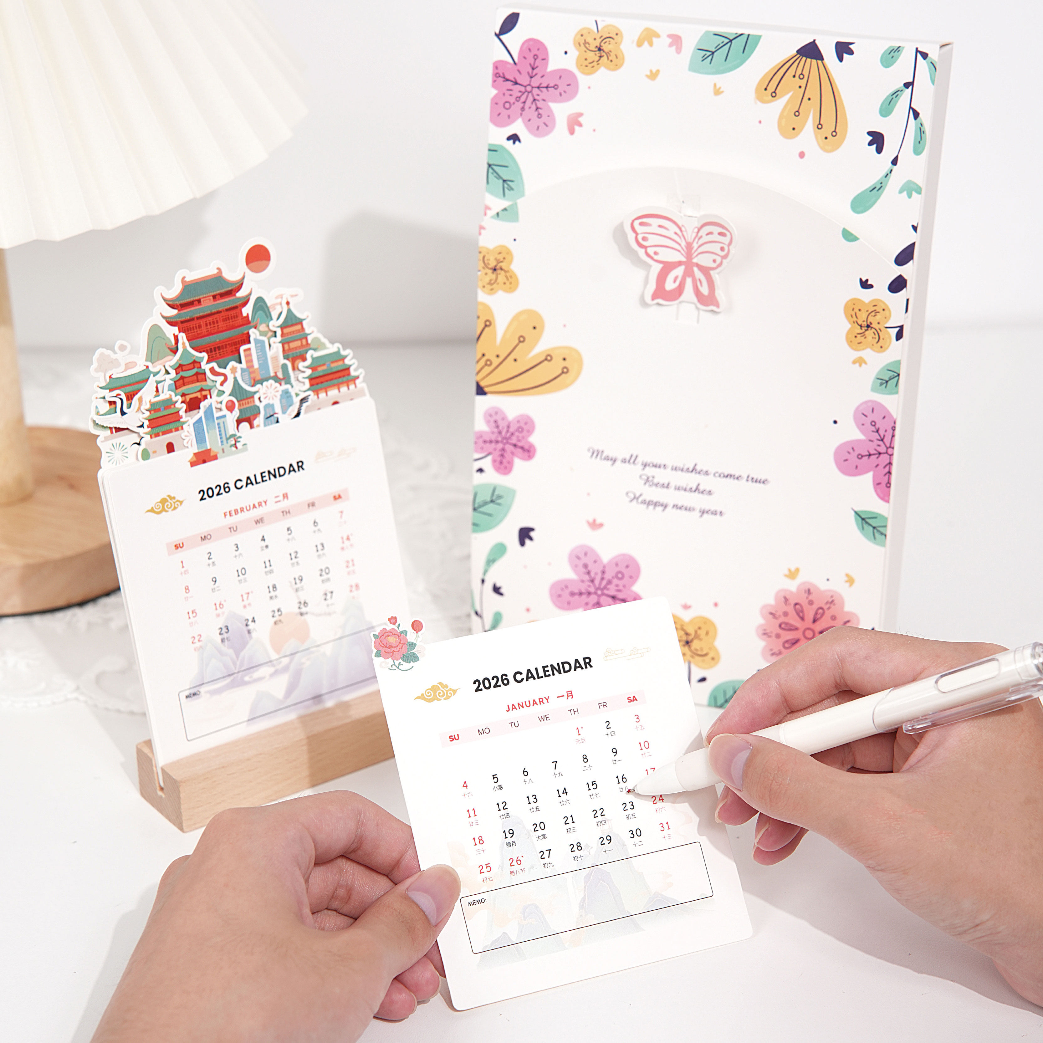 台历2026年新款日历定制logo创意简约小清新韩式办公年历个性中国风桌面摆件商务工作记事计划本订制广告月历