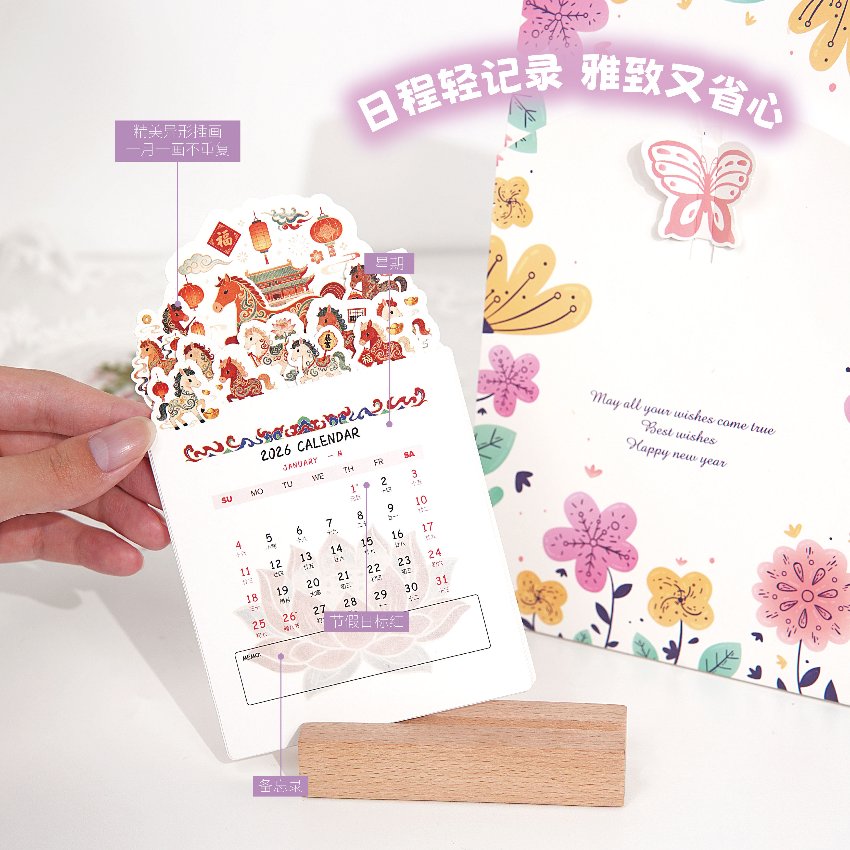 2026年新款台历创意卡通日历全年马年迷你小台历桌面摆件办公室学生每日计划表工作自律打卡记事mini计划月历