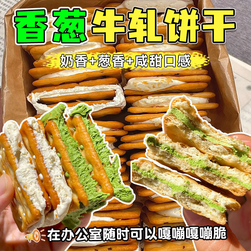 手撕牛轧饼咸香酥脆香脆抹茶牛轧糖夹心苏打饼干办公追剧解馋零食