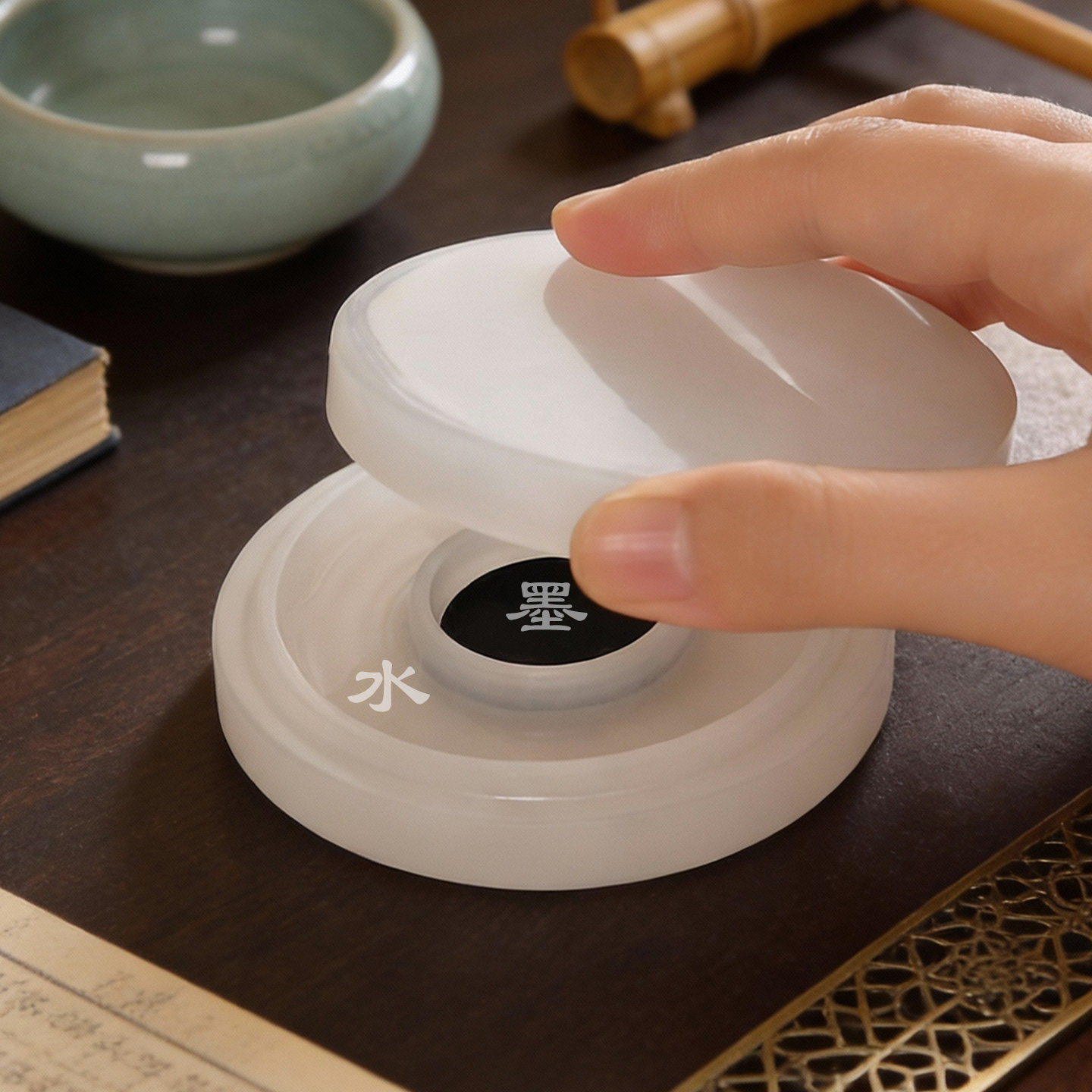 赵北天然玉石火锅砚台文房四宝毛笔书法国画专用保湿不干墨阿富汗玉文玩收藏