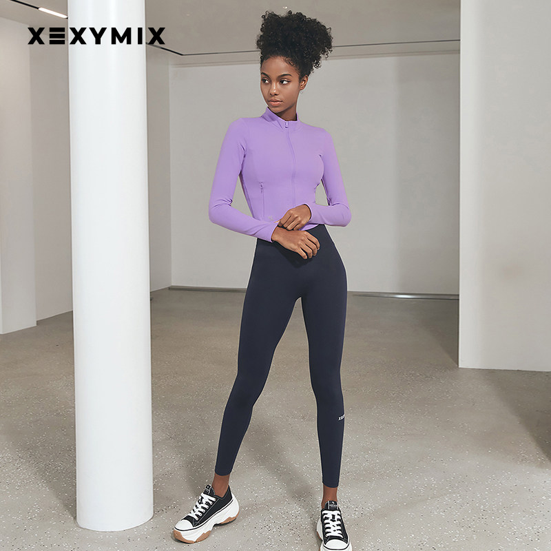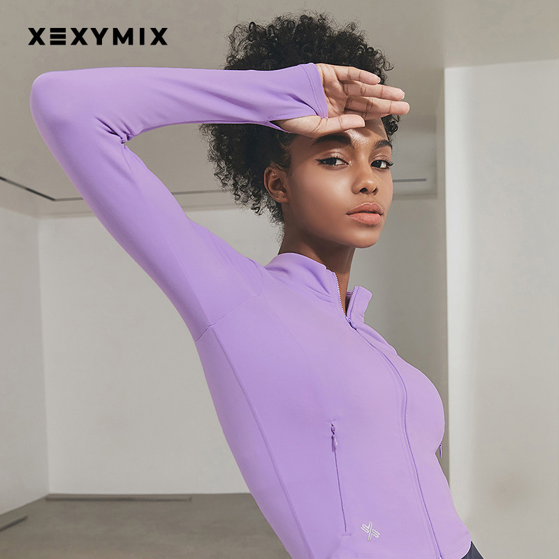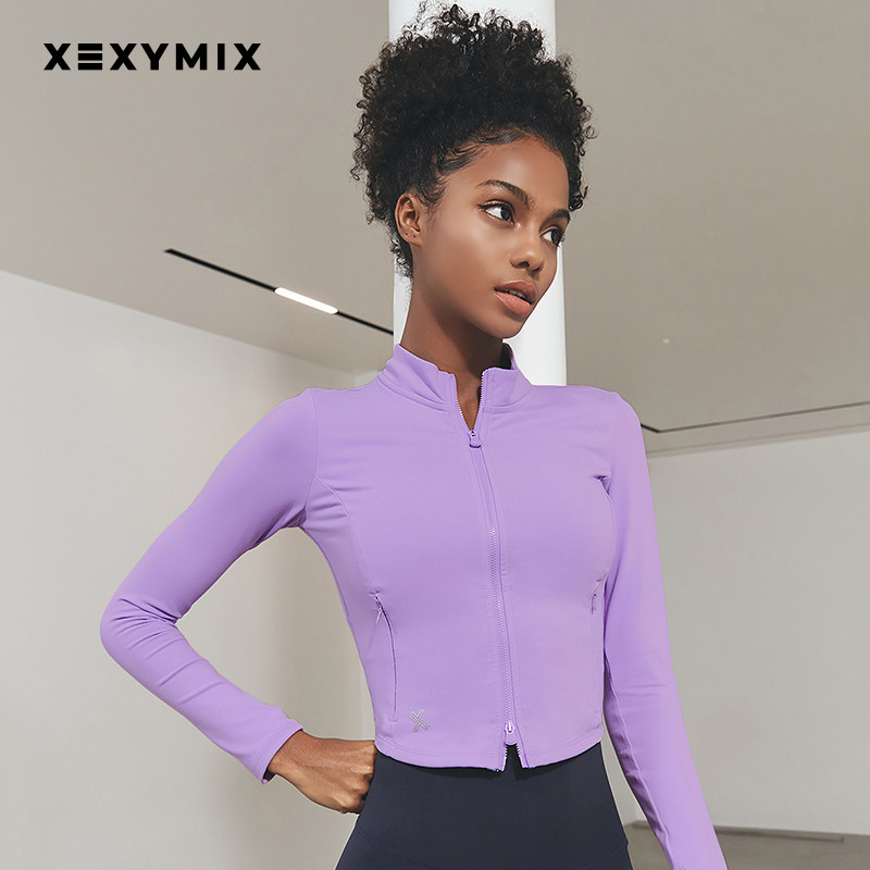 xexymix杰克茜休闲女修身短款瑜伽服外套运动健身服立领HXJA0114F