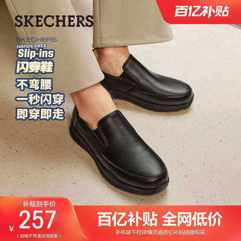 斯凯奇闪穿鞋2025秋冬软底皮鞋工作鞋一脚蹬休闲男鞋黑色商务皮鞋