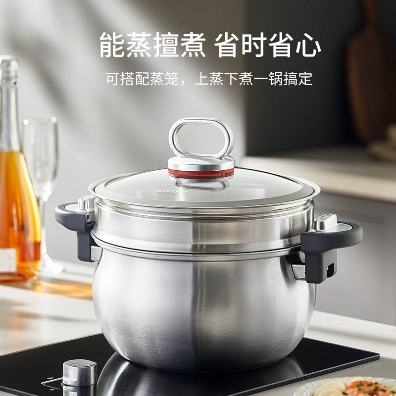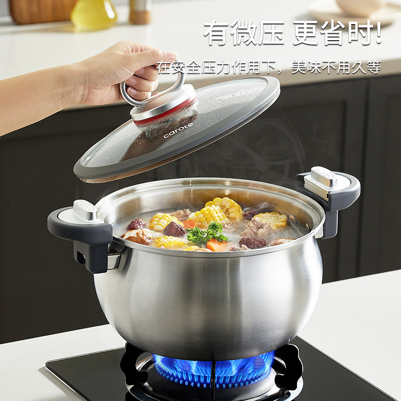卡罗特微压汤锅蒸煮锅炖锅家用304不锈钢双耳煲汤锅电磁炉燃气灶