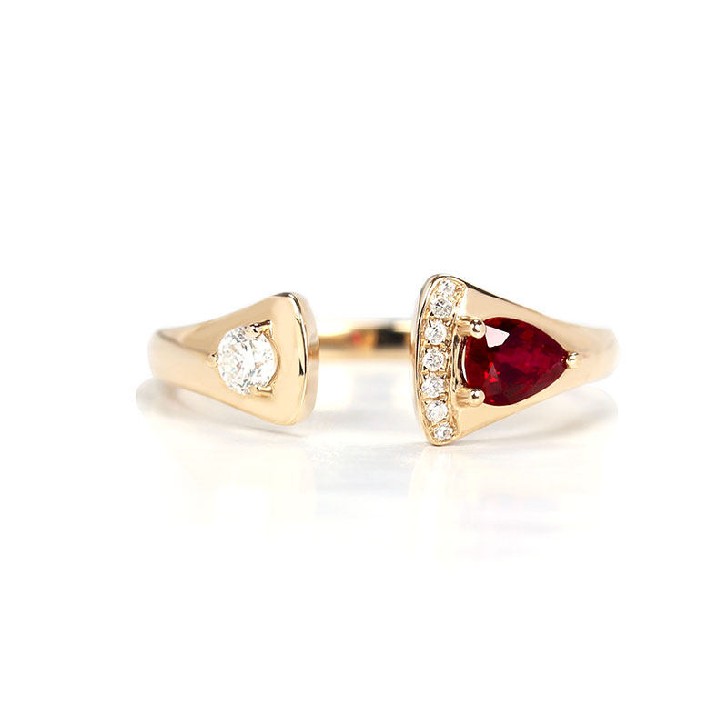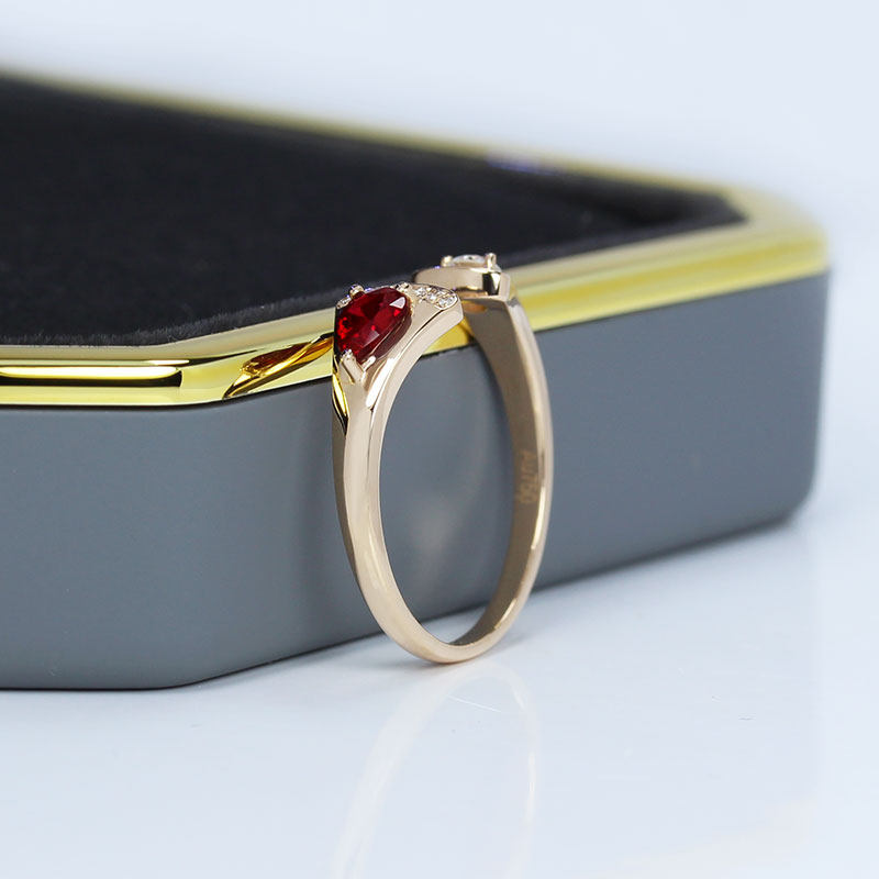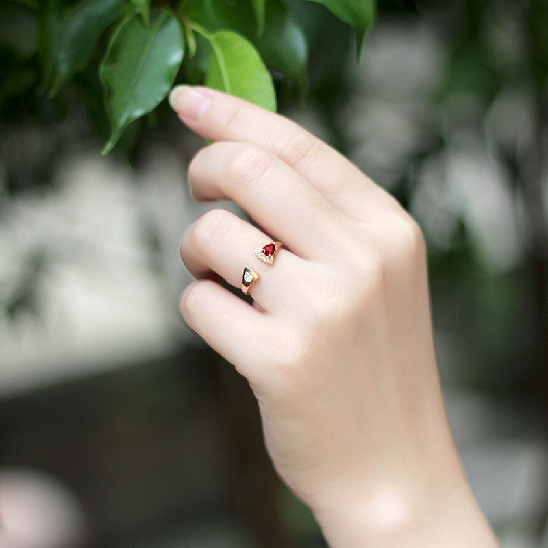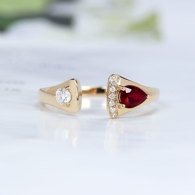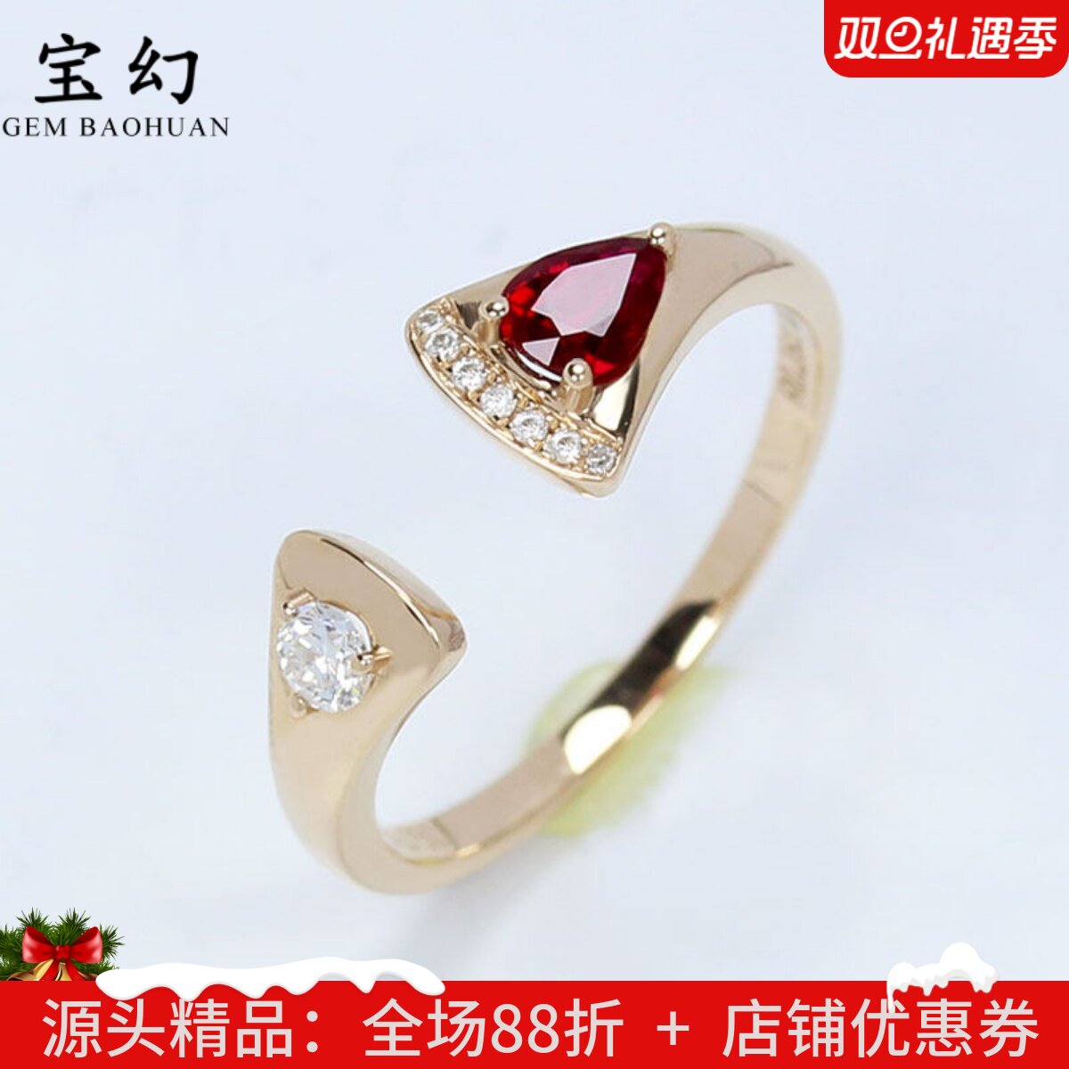 18K玫瑰金天然无烧鸽血红宝石小裙子开口戒指 水滴形活口指环女款