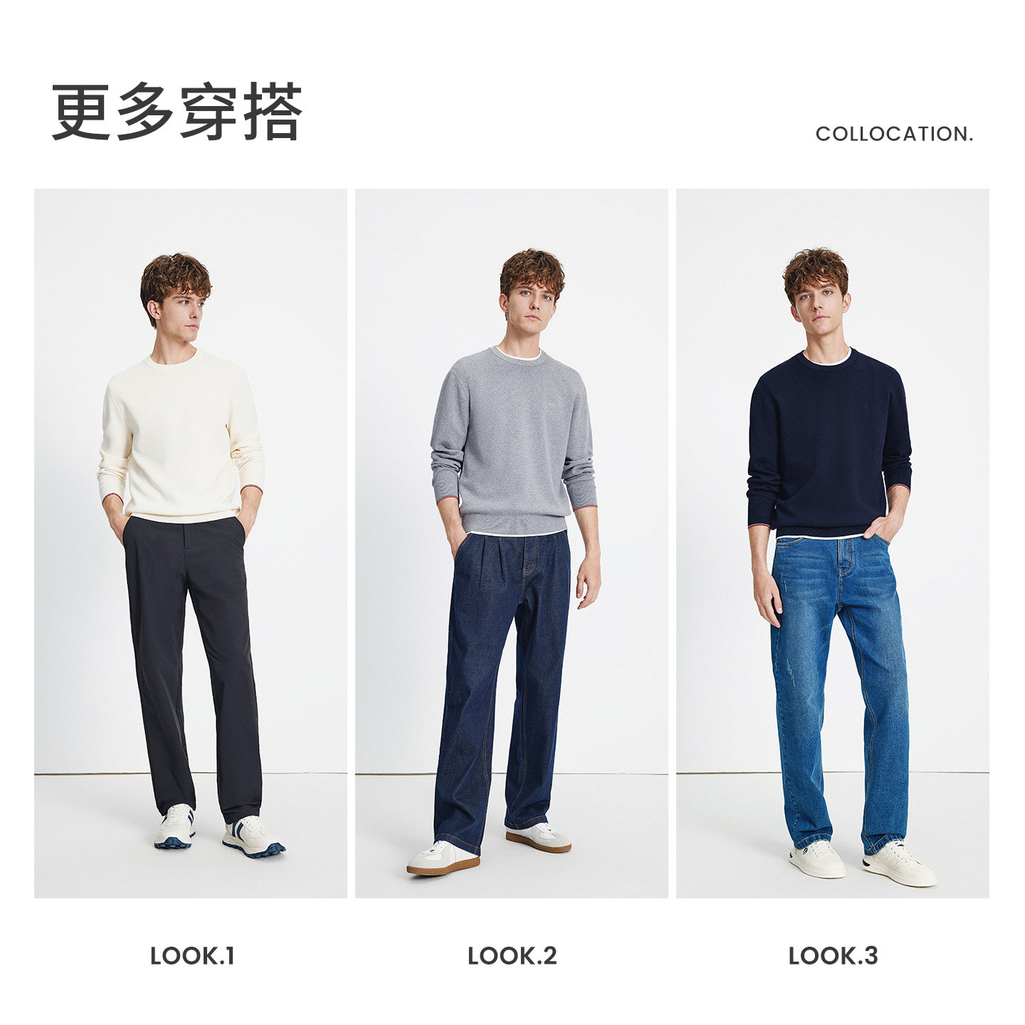 森马毛衫男冬季满版提花针织衫撞色毛衣宽松套头衫百搭提花潮-TK