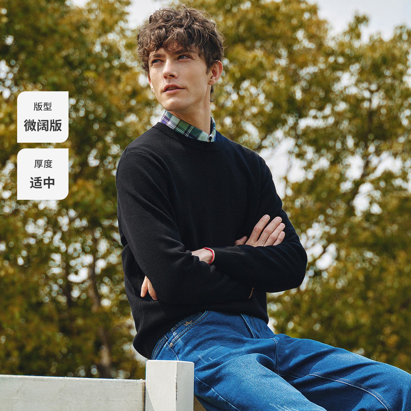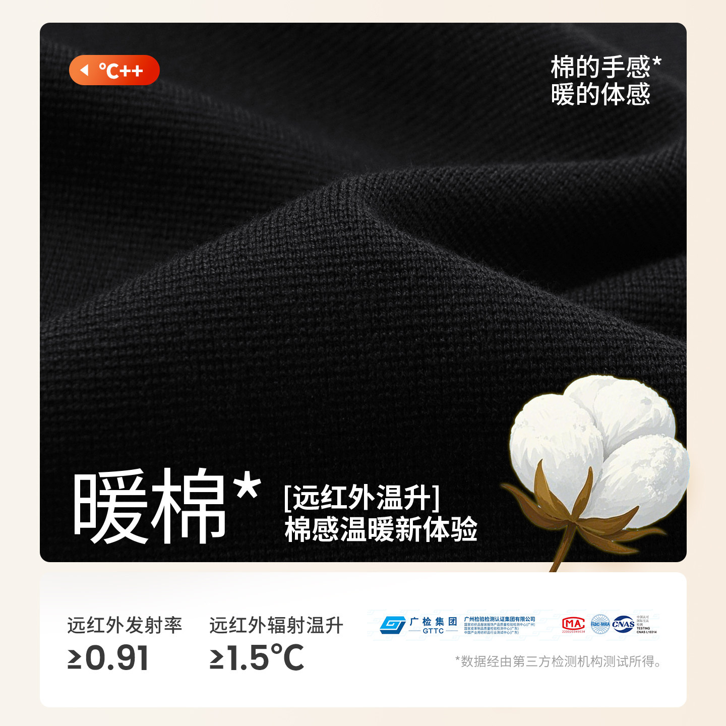 森马毛衫男冬季含羊绒针织衫发热抑菌2025新款基础圆领黑色打底衫