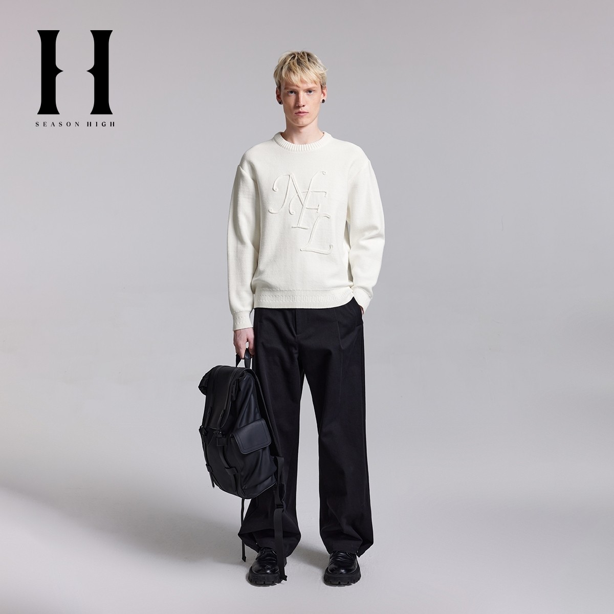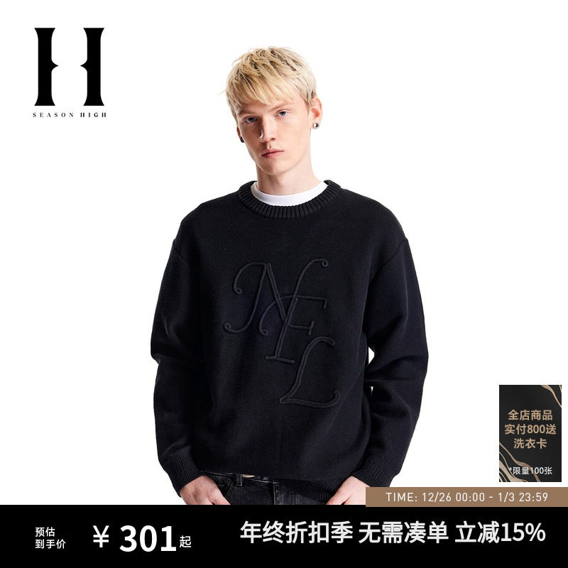 SEASONHIGH秋冬NFL联名时尚运动立体字母针织衫宽松圆领毛衣男装