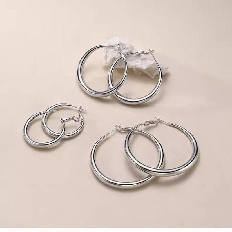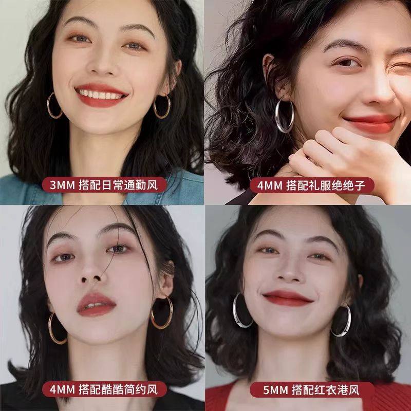 925纯银大圆圈素圈耳环女新款夸张高级感耳钉圈圈耳饰粗圈耳圈
