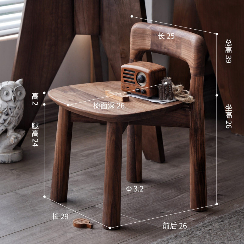 实木小凳子小椅子家用板凳黑胡桃木带靠背矮凳儿童玄关换鞋凳方凳