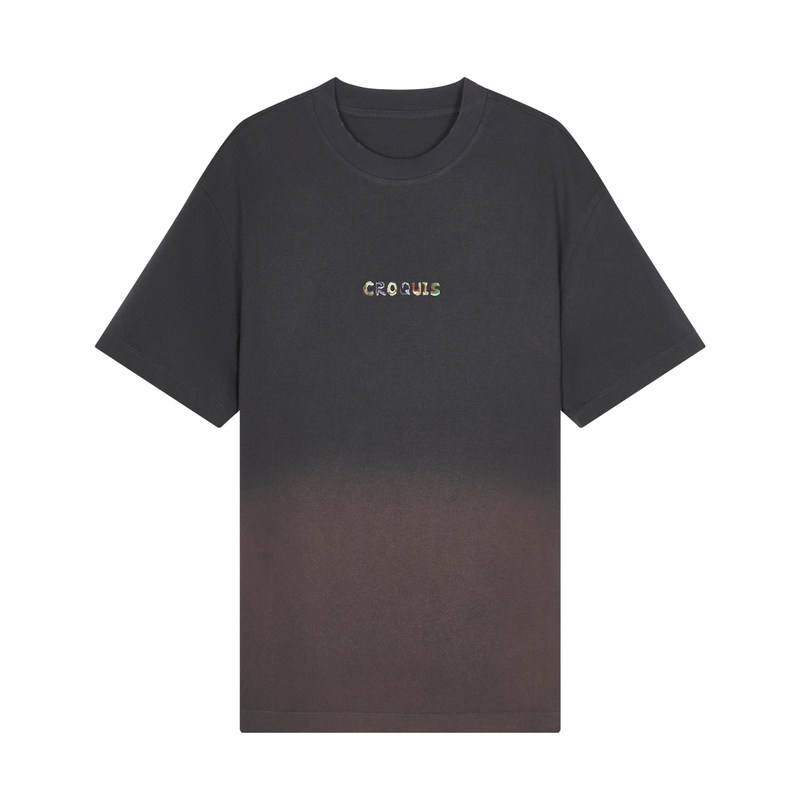 速写男装短袖圆领刺绣渐变色夏季男士新款休闲潮街头时尚T恤上衣