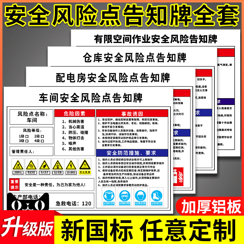 配电房安全风险点告知牌车间仓库空压机岗位风险告知卡有限空间警示标识牌工厂生产机械设备职业危害告示标志
