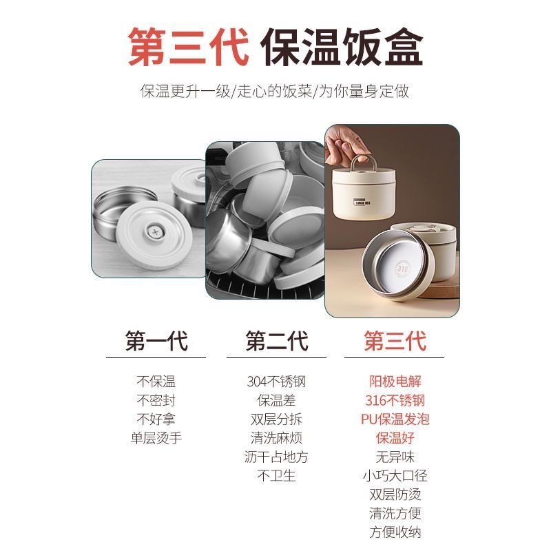 保温饭盒316防漏上班族便当盒学生午餐盒带饭汤碗分装多层保温桶