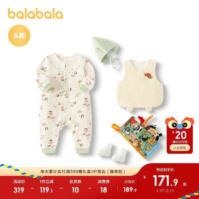 巴拉巴拉新生儿用品大全礼盒满月礼物五件装森系清新可爱亲肤舒适