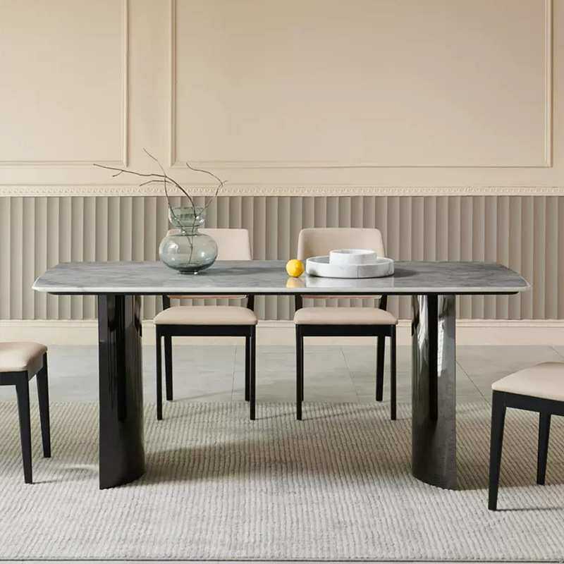 轻奢意式天然微晶石餐桌大理石长方形小户型不锈钢家用饭桌椅组合