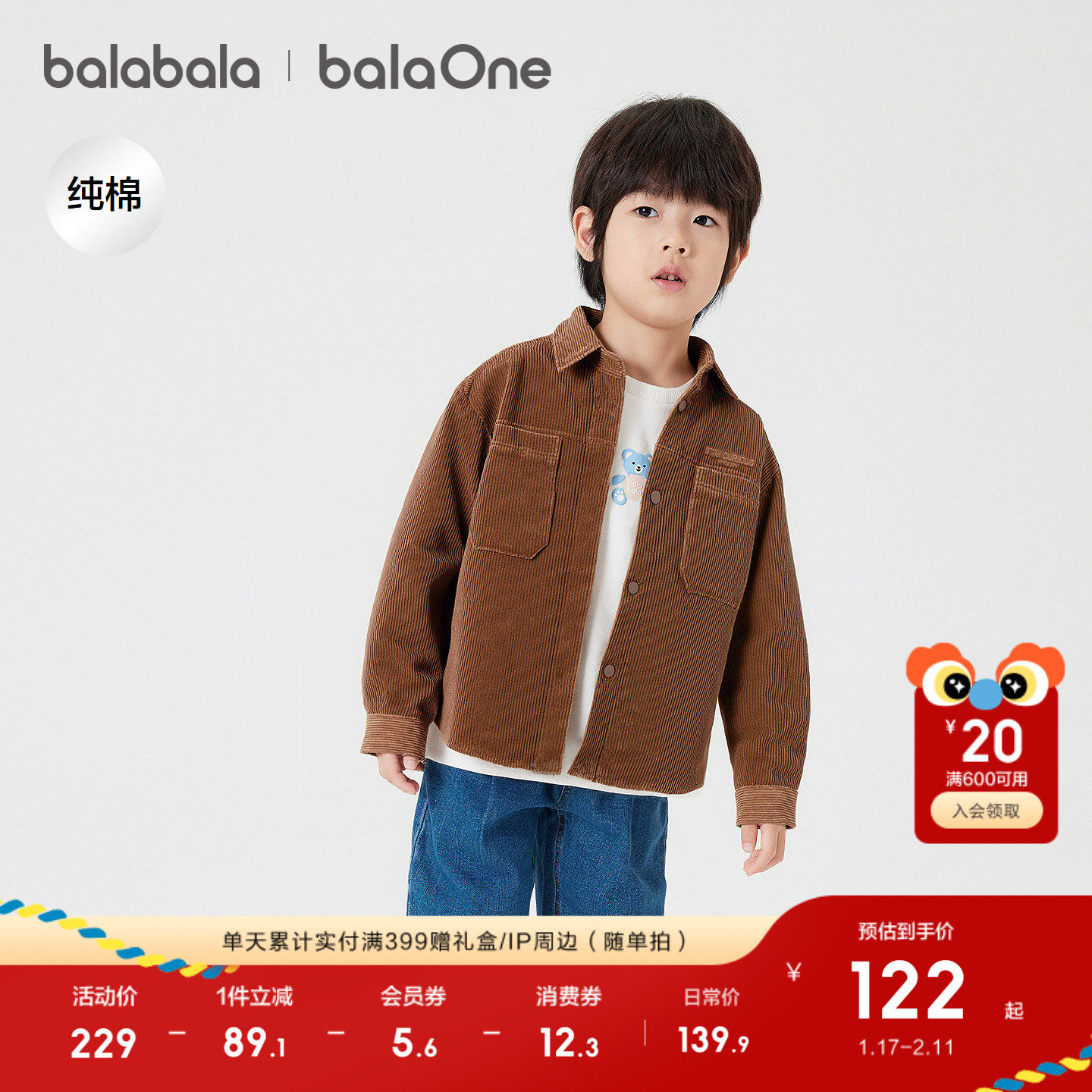巴拉巴拉童装男童衬衫儿童长袖2025新款秋灯芯绒宽松纯棉上衣舒适
