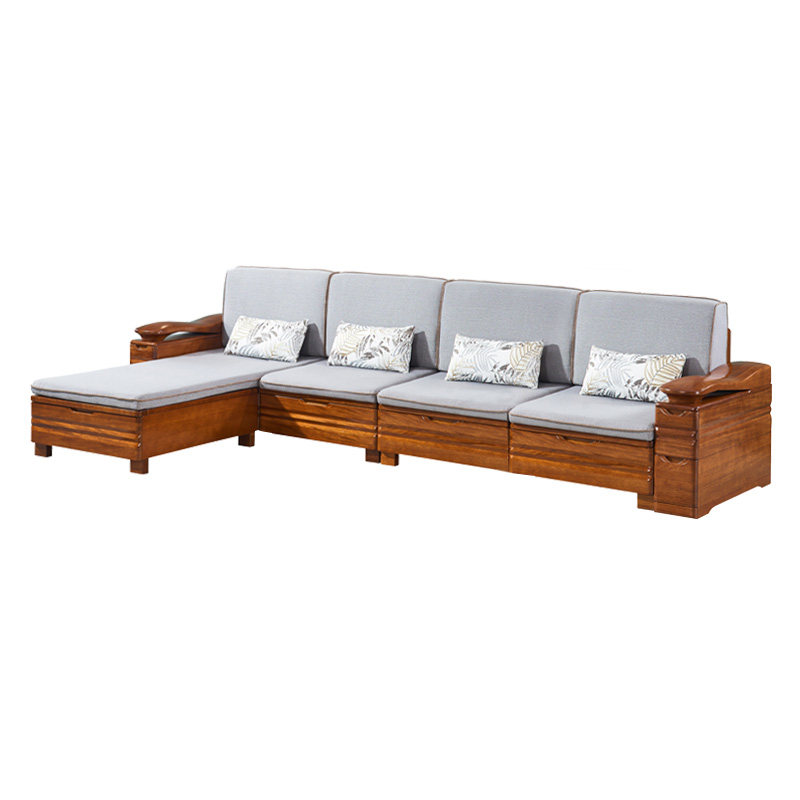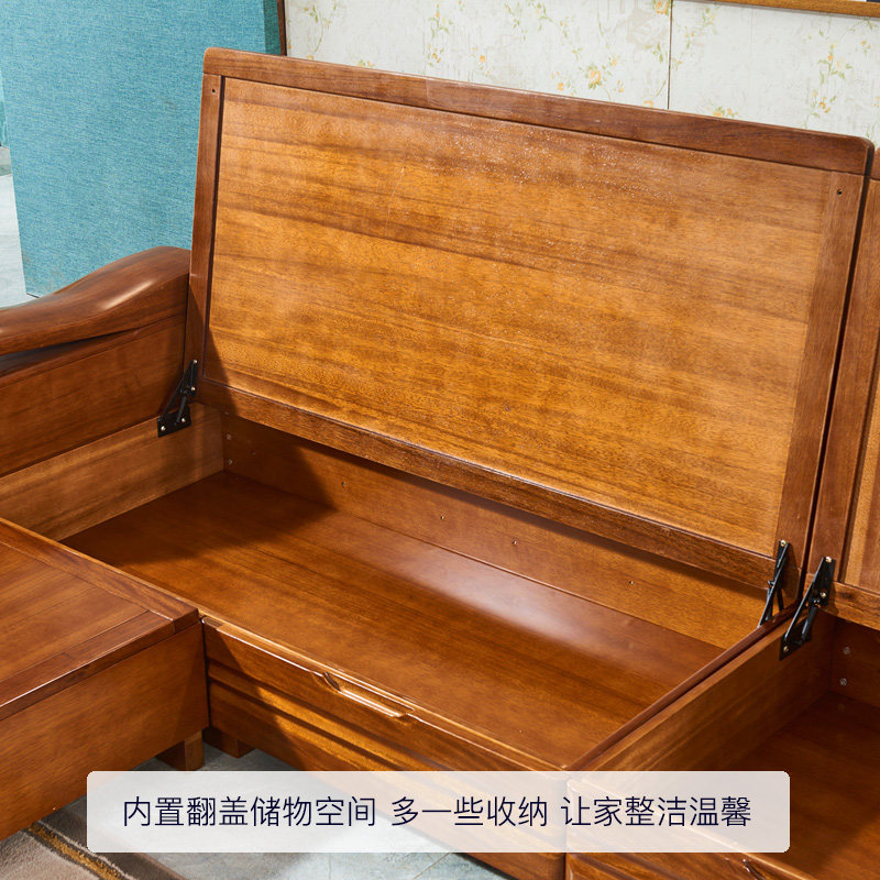 全实木沙发客厅现代中式金丝胡桃木小户型储物转角贵妃沙发三人位