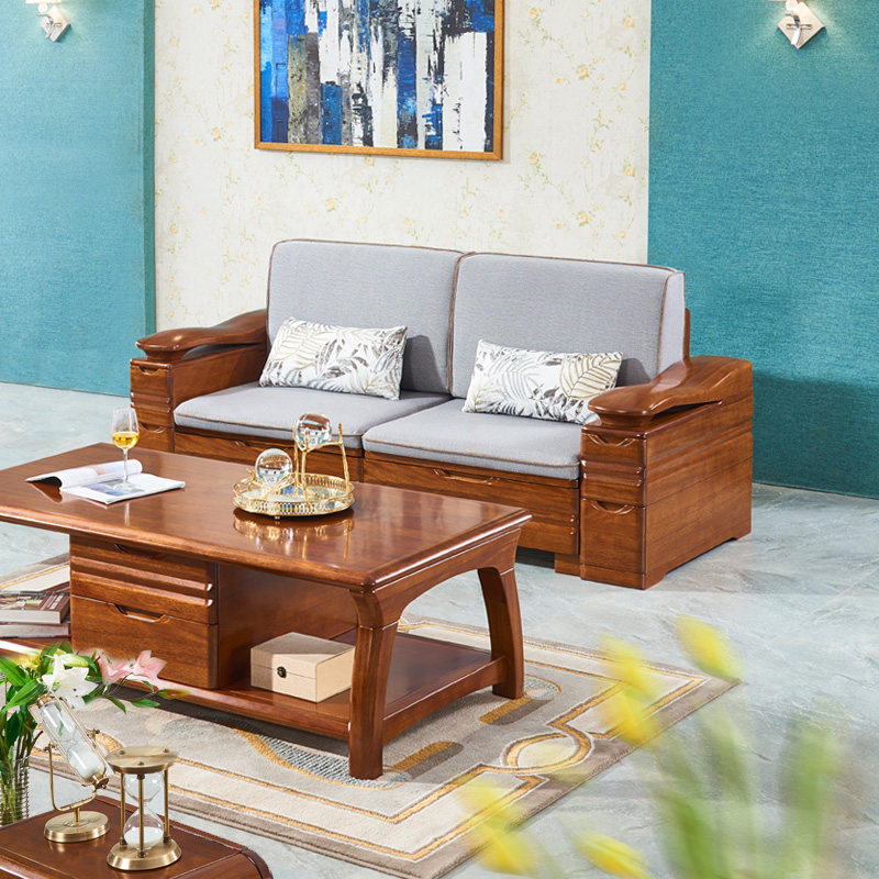 新中式实木沙发组合经济型沙发客厅小户型出租房冬夏两用木质沙发