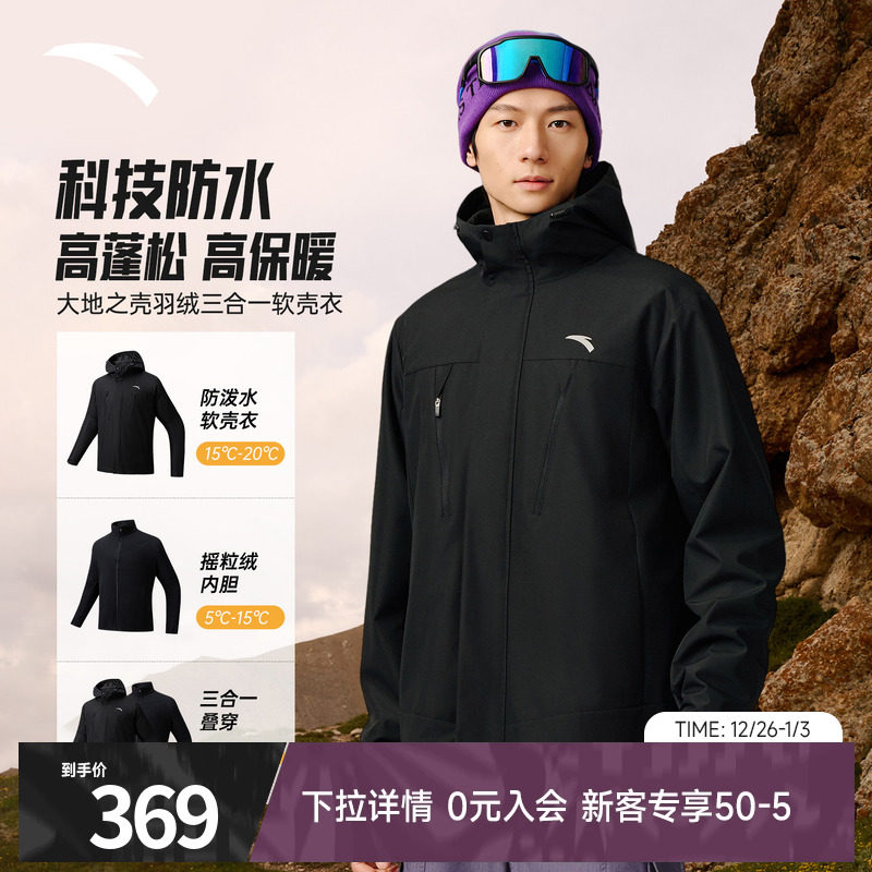 安踏三合一冲锋衣男2025冬季摇粒绒内胆防泼水两件套夹克上衣男款