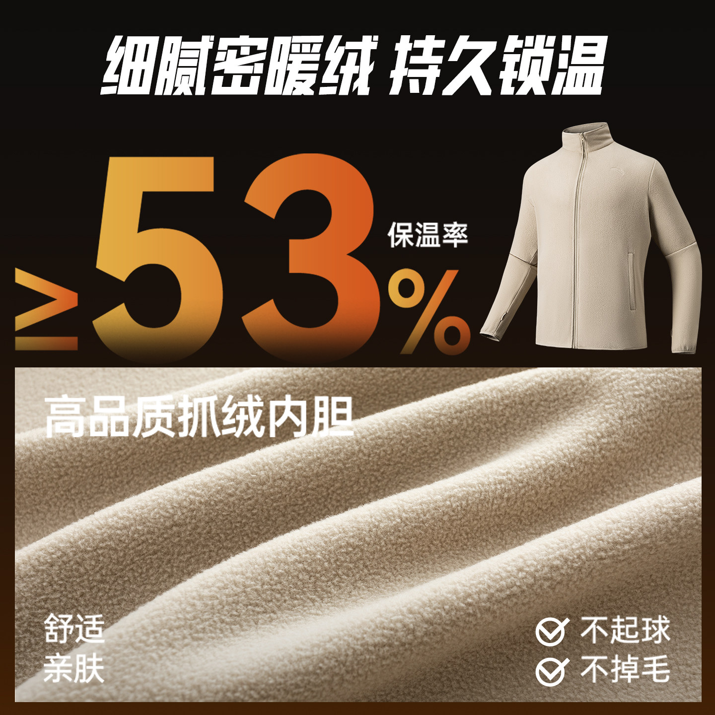 鸿星尔克加绒外套男款冬季新款男士冲锋运动跑步防风夹克加厚风衣