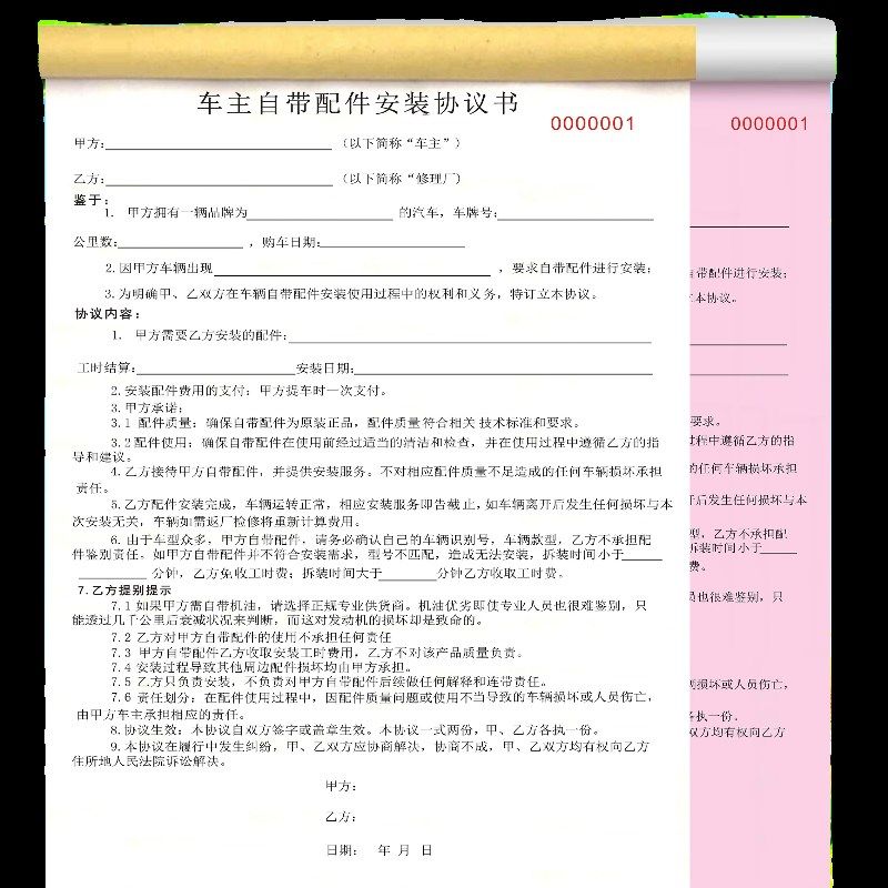 汽车维修自带配件安装协议书车主自带配件安装免责协议维修服务单