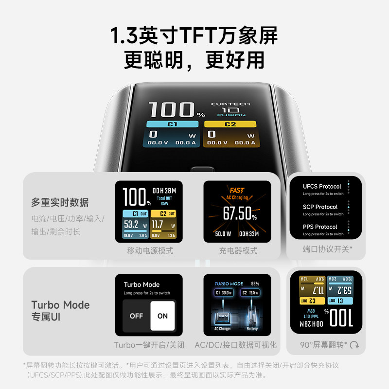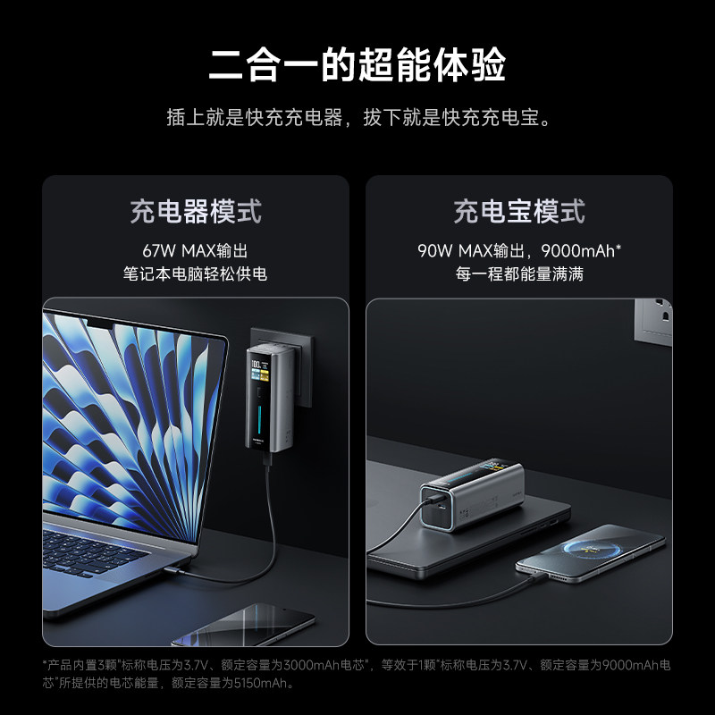 【3C认证】CUKTECH酷态科10号电能充二合一67W氮化镓充电器90W充电宝可上飞机适用于苹果17Pro小米移动电源