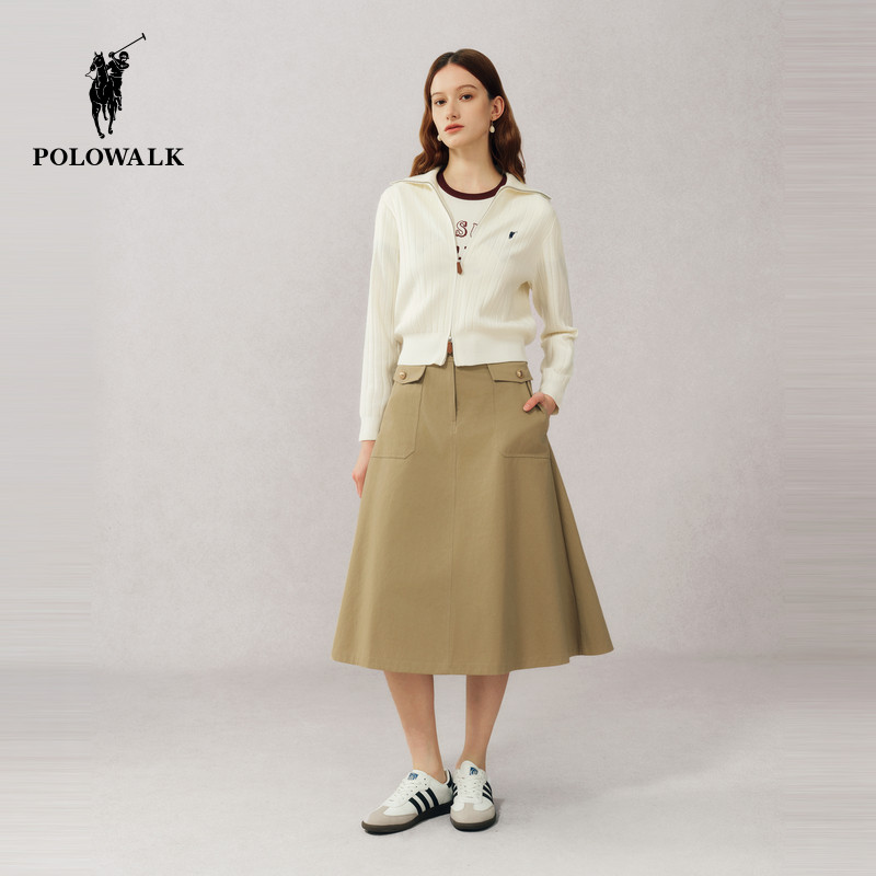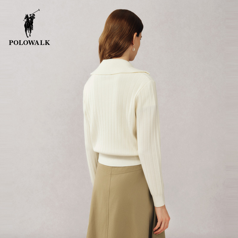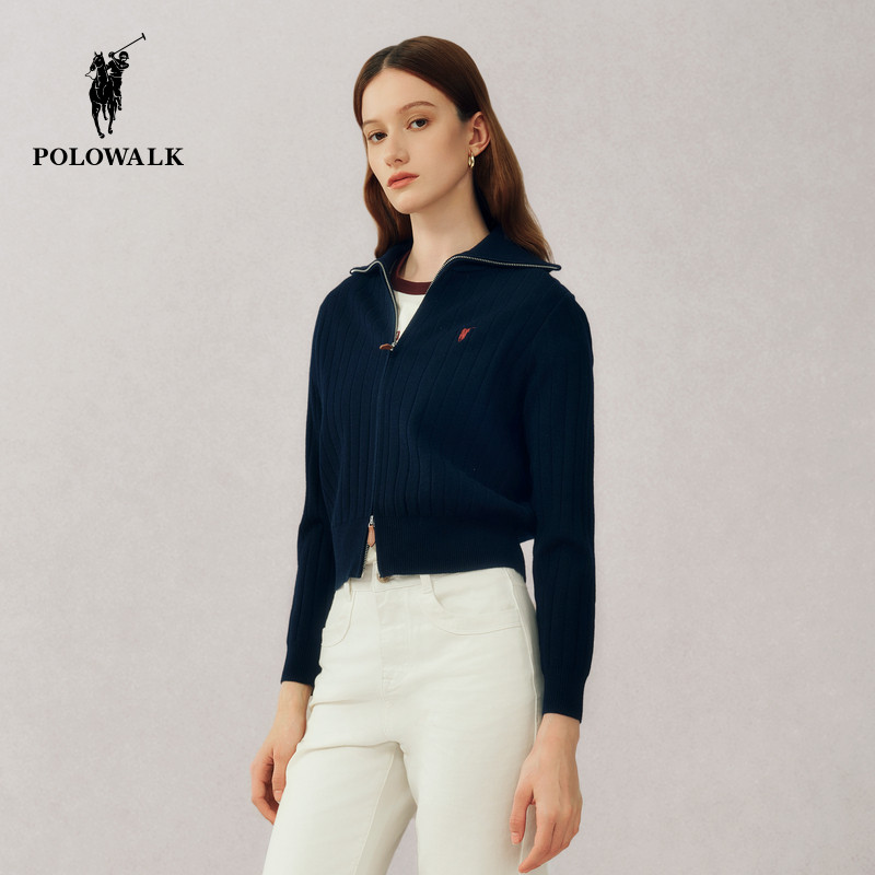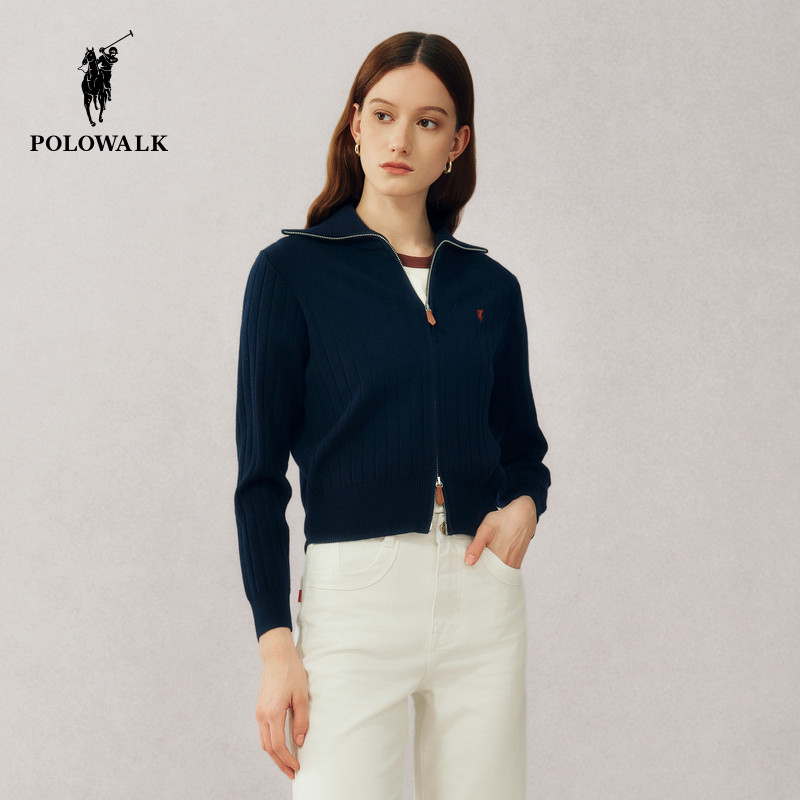 POLOWALK长袖针织衫女式春季韩版翻领开衫休闲马标外套