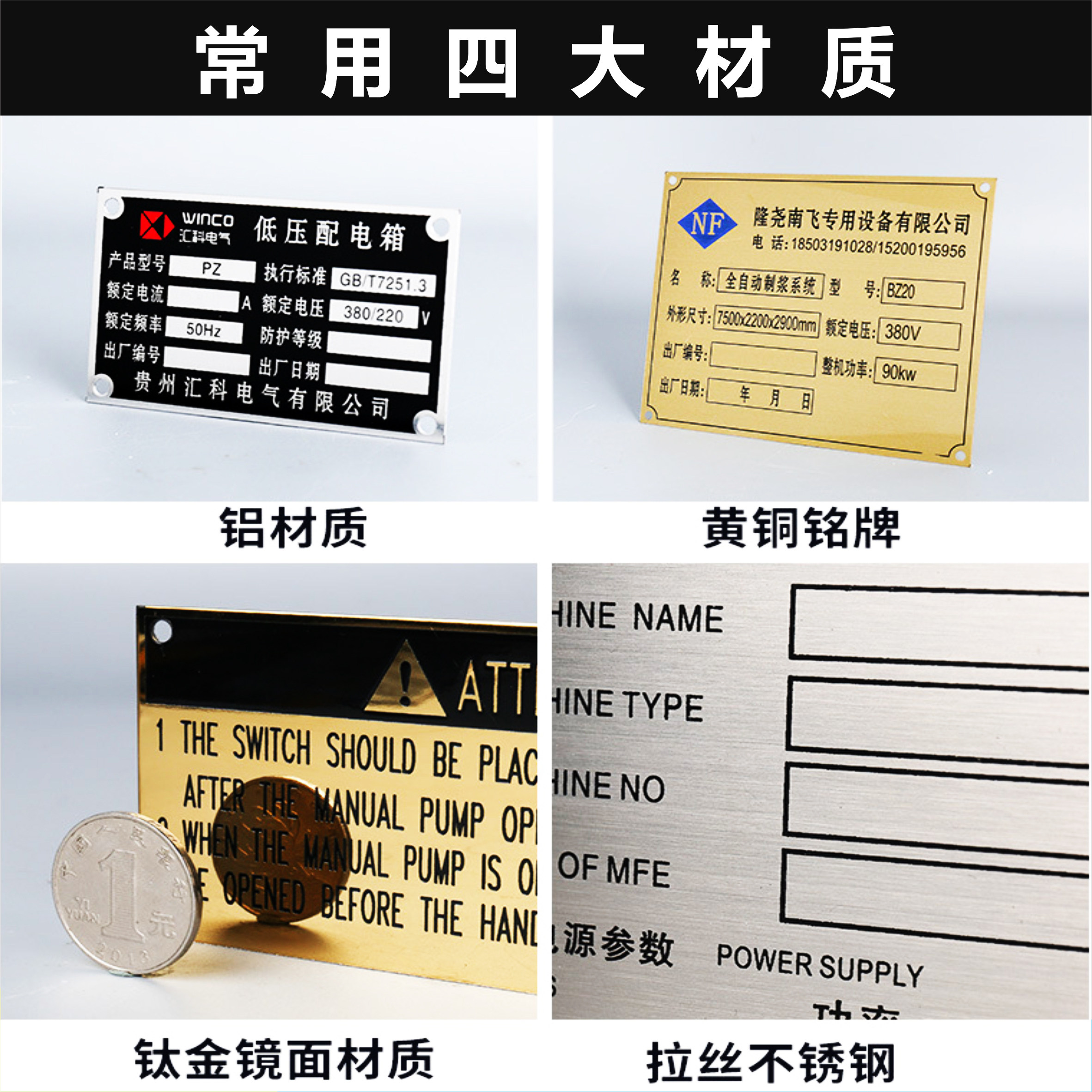 金属铭牌定制不锈钢牌铝牌激光雕刻UV印刷腐蚀工艺机器设备标识