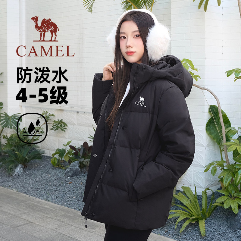 骆驼女装三防羽绒服2025新款冬季黑色保暖面包服轻薄短款羽绒外套