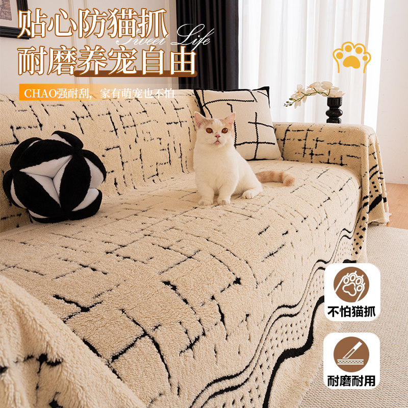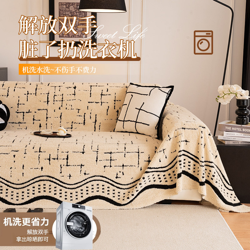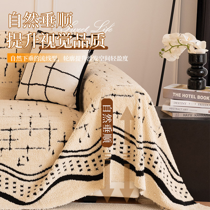 毛绒沙发盖布秋冬2025新款加厚防滑沙发巾一片式坐垫全包套罩毯
