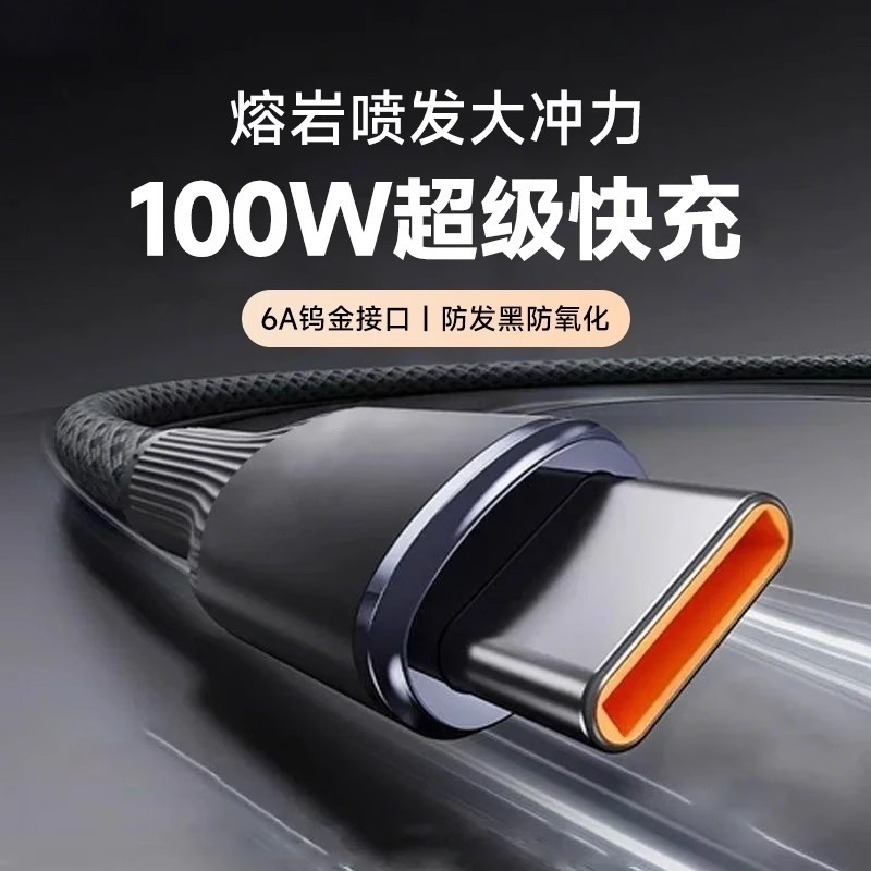 100W超级120W快充Type-C数据线6A充电线适用华为mate荣耀magic闪充VIVO手机usb转C闪充双头tpyec安卓66W平板