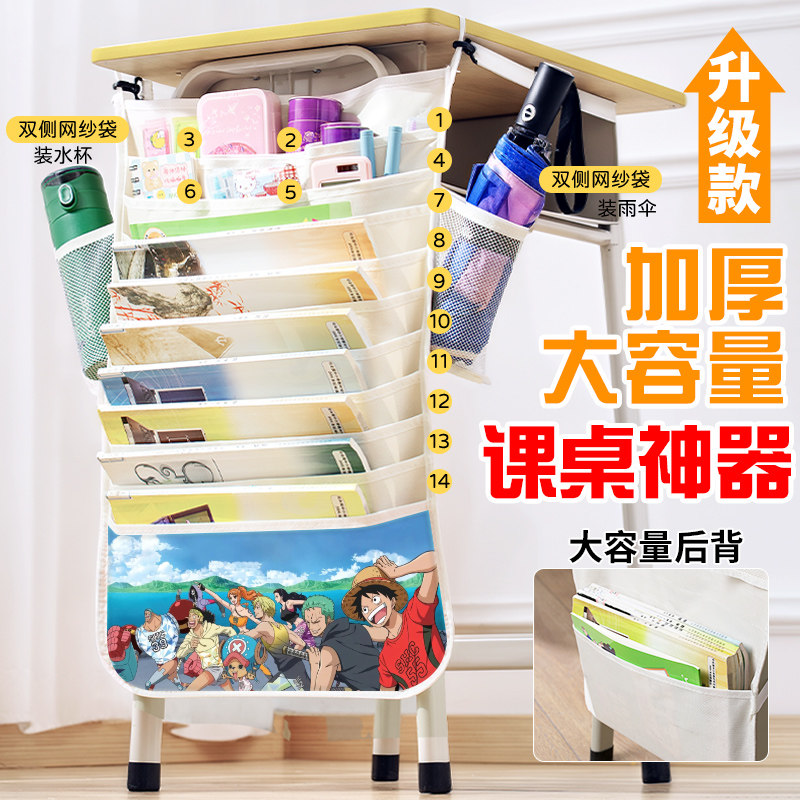 日系动漫大容量桌边挂书袋海贼王路飞索隆高中生初中生书袋课桌收纳小学生书本收纳袋书桌书袋挂袋课桌收纳袋