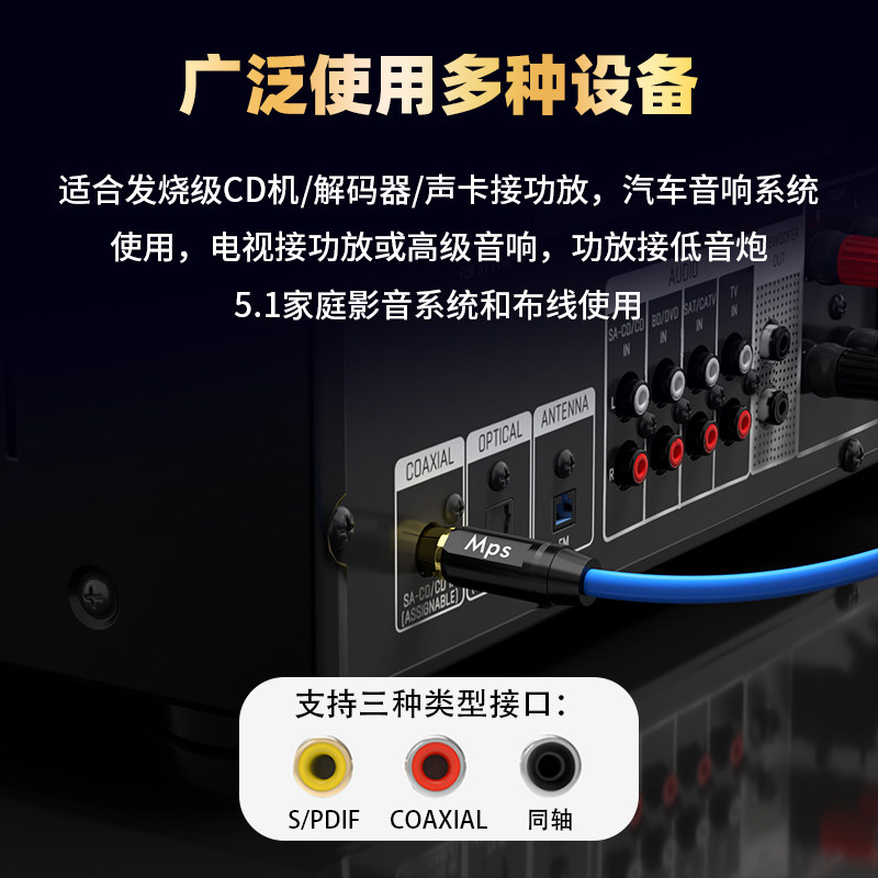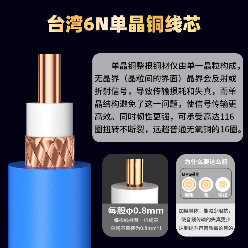 Mps发烧级6N单晶铜HiFi数字75欧RCA同轴音频线音响音箱信号连接线