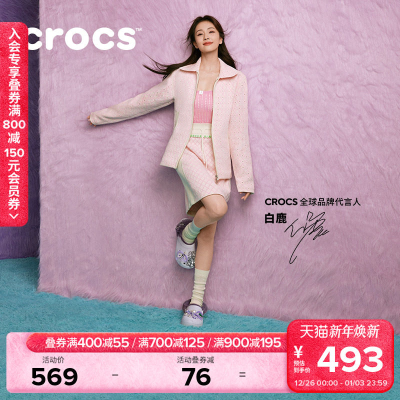 白鹿同款Crocs卡骆驰经典云朵暖绒洞洞鞋女鞋厚底毛毛鞋|212854