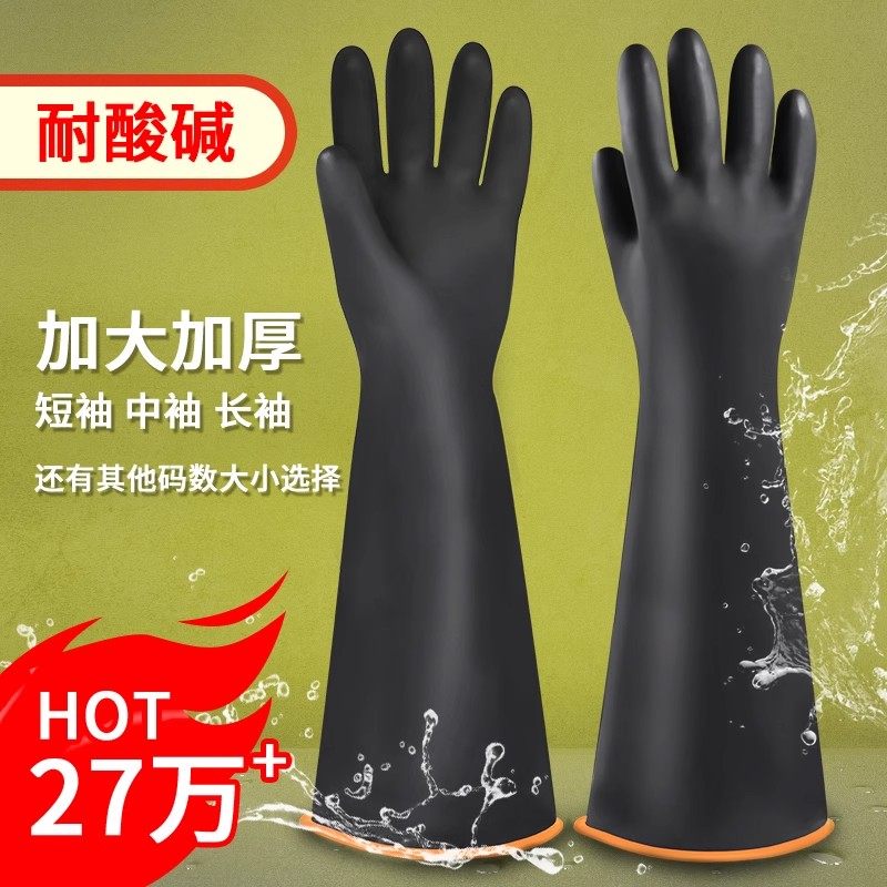 耐酸碱工业橡胶手套实验室加厚加大防化防污水抗腐蚀乳胶劳保耐油
